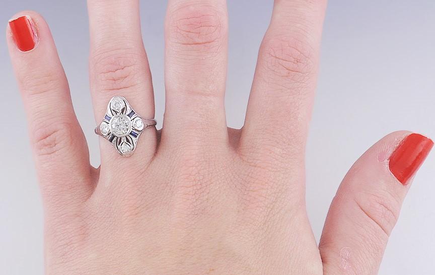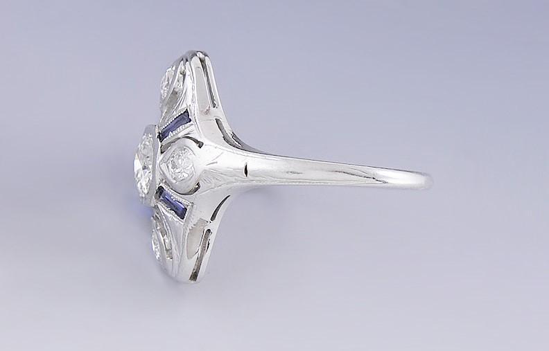 is an American ring, dating to around the 1920s. The ring is done in a 'navette'