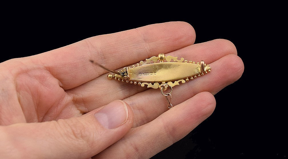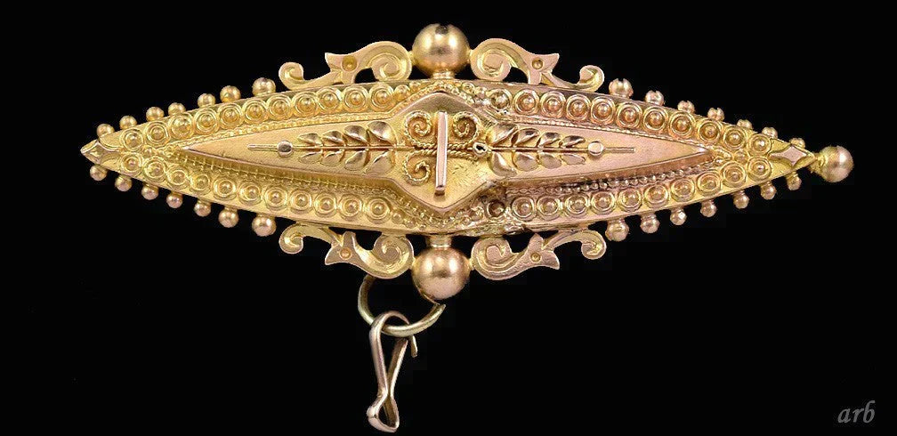 Gorgeous English 15k Yellow Gold Tiered Pin Pendant Etruscan Revival Wirework