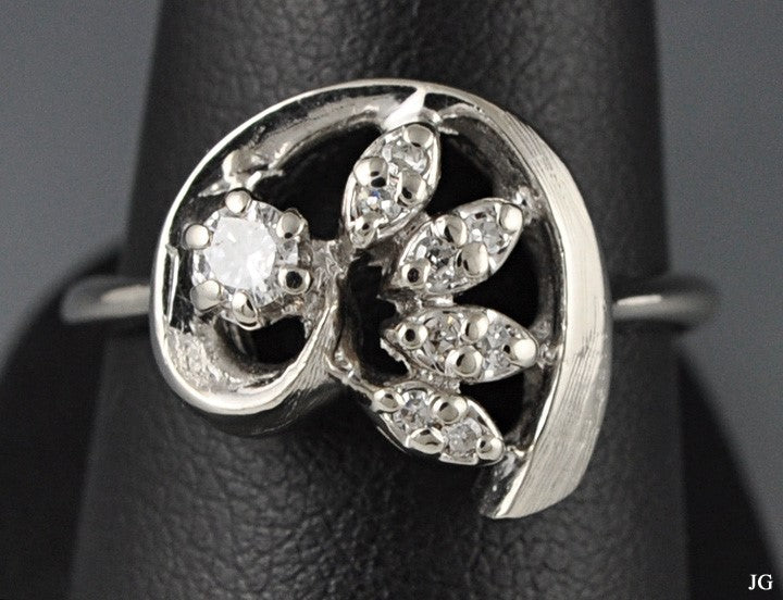 Gorgeous Genuine Diamond 14K White Gold Ring Sz 7.75