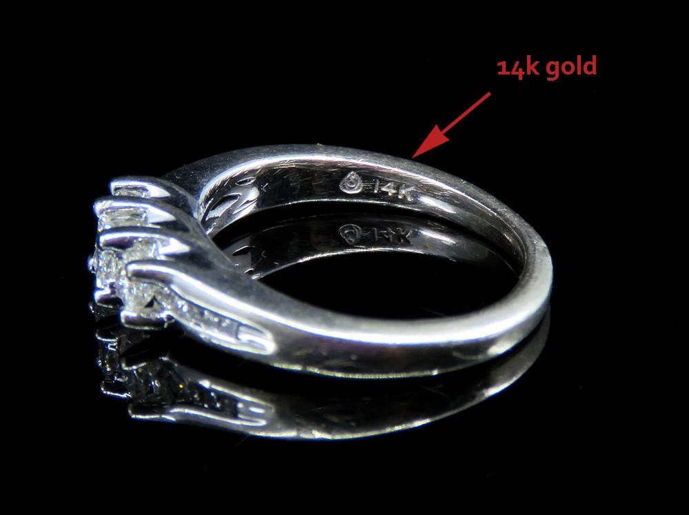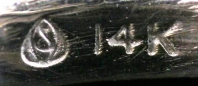 The inside is marked 14K and has a maker’s mark, possibly for Stuller. We have tested the ring with nitric acid and guarantee it to be 14K gold.