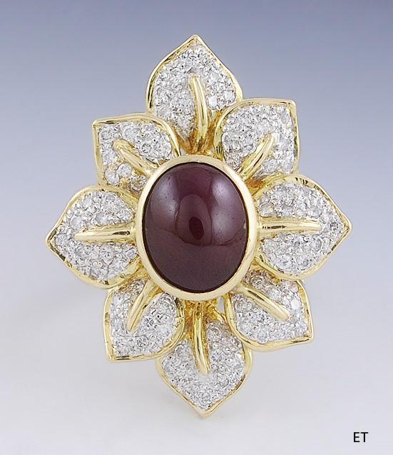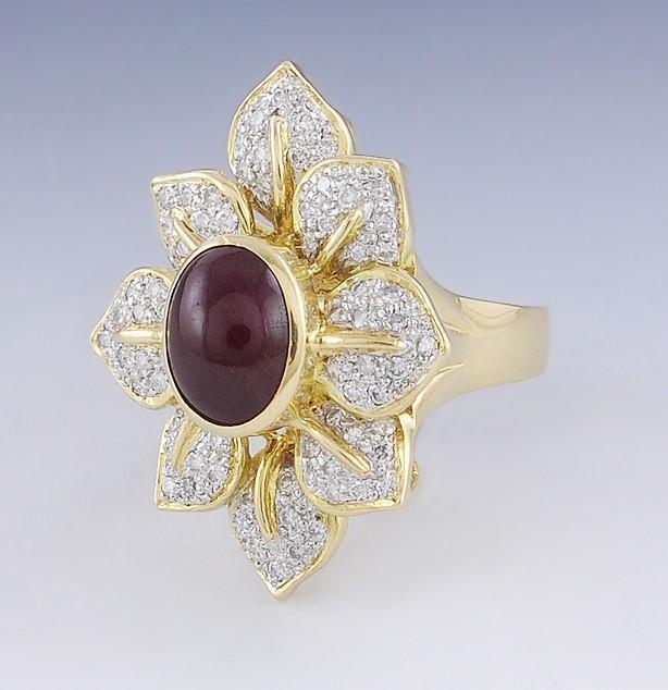 Gorgeous Ruby & Diamond 18k Gold Flower Shaped Ring