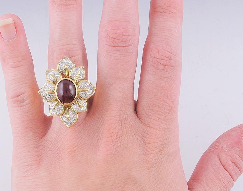 large, eye-catching ring done in the shape of a flower. The petals of the flower