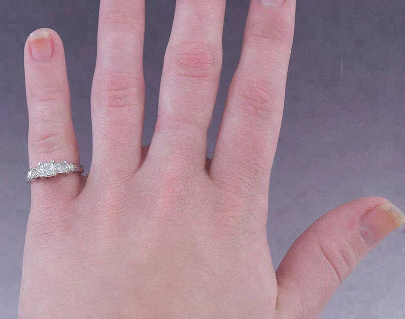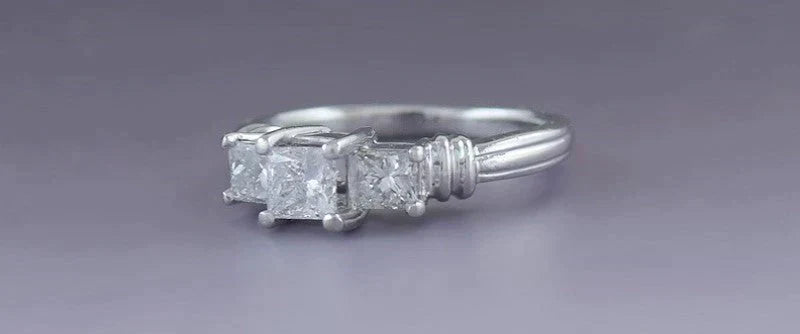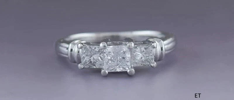 Gorgeous Three Princess Cut Diamond Platinum Engagement Ring .84ct