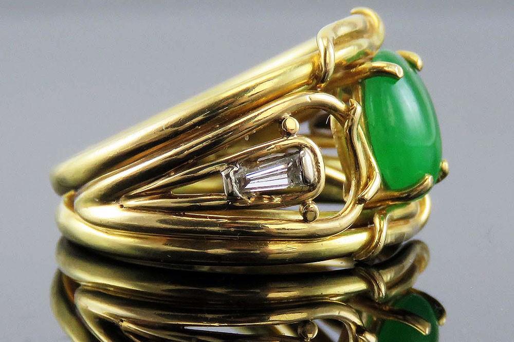 Gorgeous Unusual 18K Yellow Gold Jadeite Jade and Diamond Modern Ring