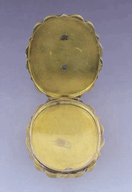 This piece is in great condition. The enamel is in great shape, with no chips and no losses. The locket snaps shut nicely. The glass is loose in the bezel, so that it pushes back against the interior unless there is something in thelocket, but it will not come out of the bezel. There is a little hole on the back of the locket, possibly so a lapel watch or dangle could be added, but this is not visible from the front.