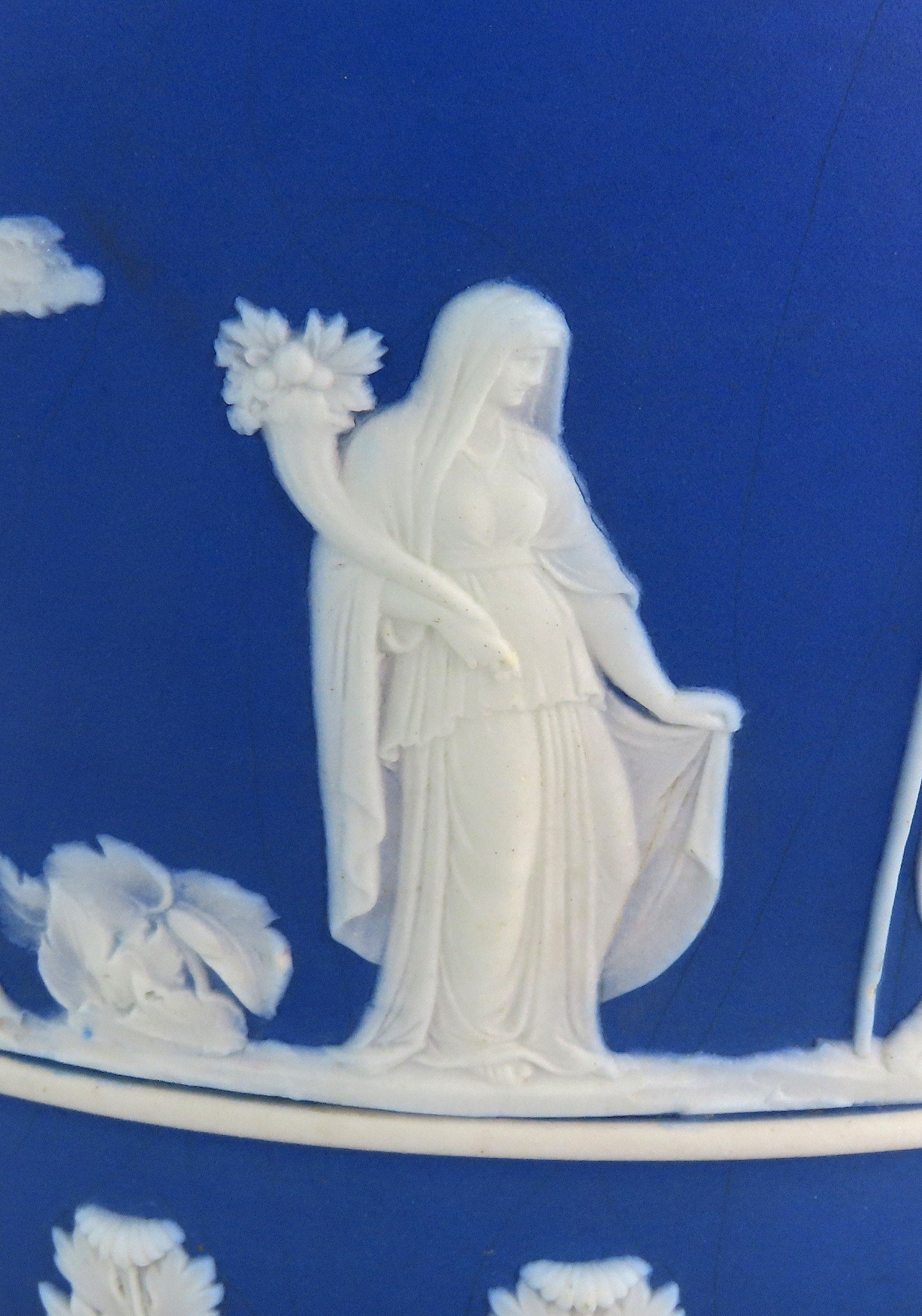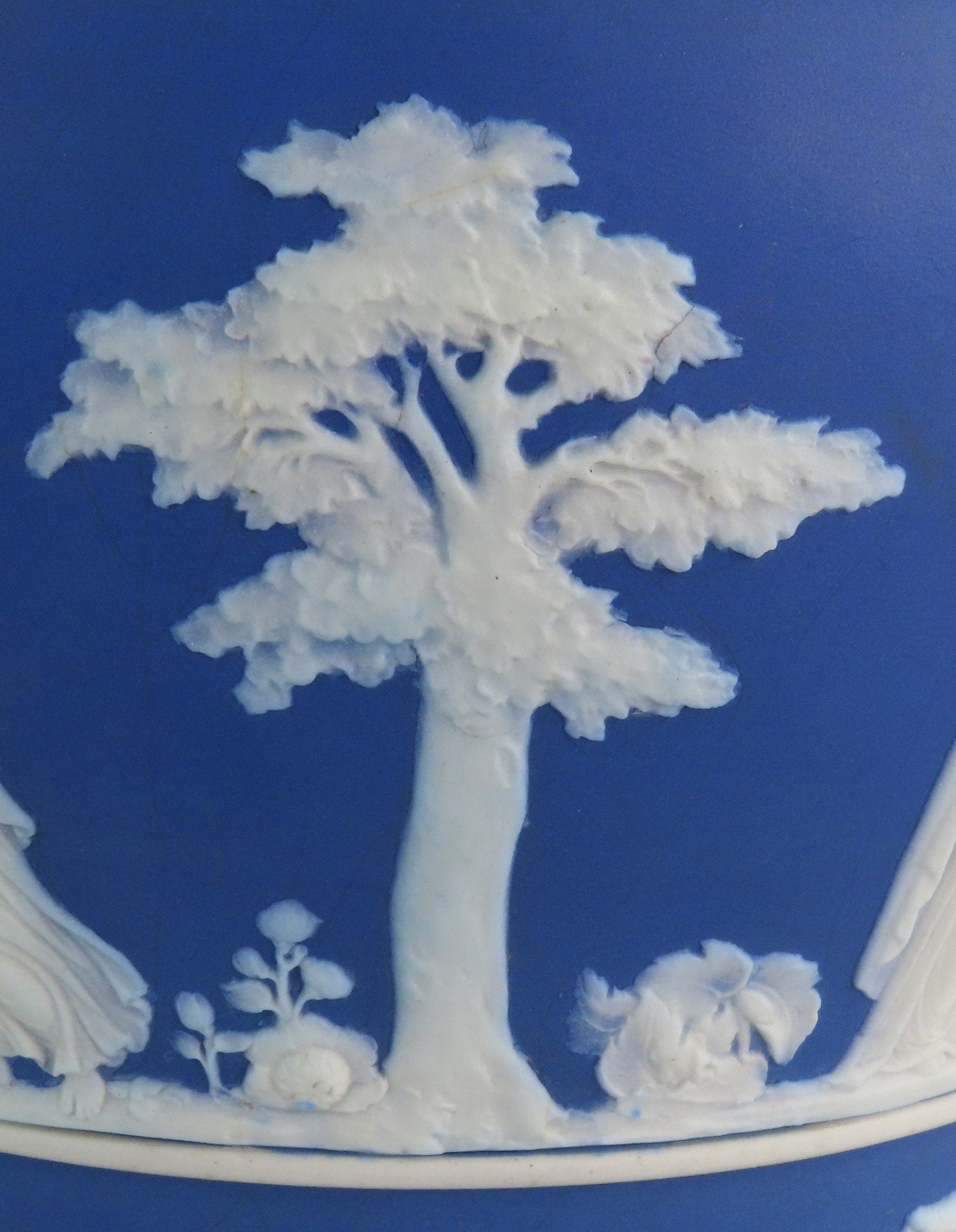 Gorgeous Wedgwood Jasperware Blue Round Planter Classical Greek Scenes 7" Across