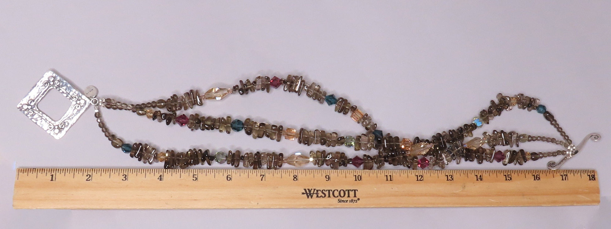 Great 3-Strand Beaded Necklace w/ Sterling Silver Square Toggle 17 Inches