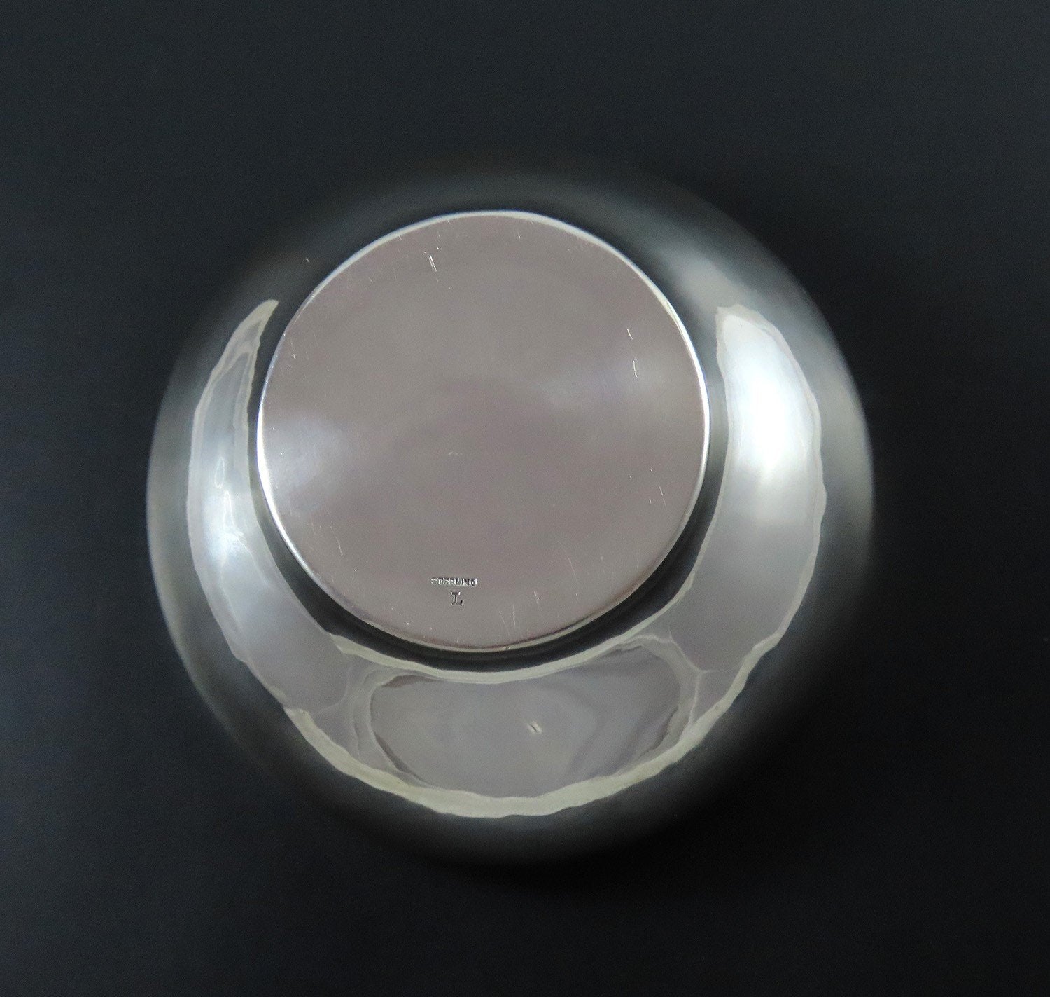 The underside of the bowl is marked sterling along with the maker's mark for Karl Leinonen.