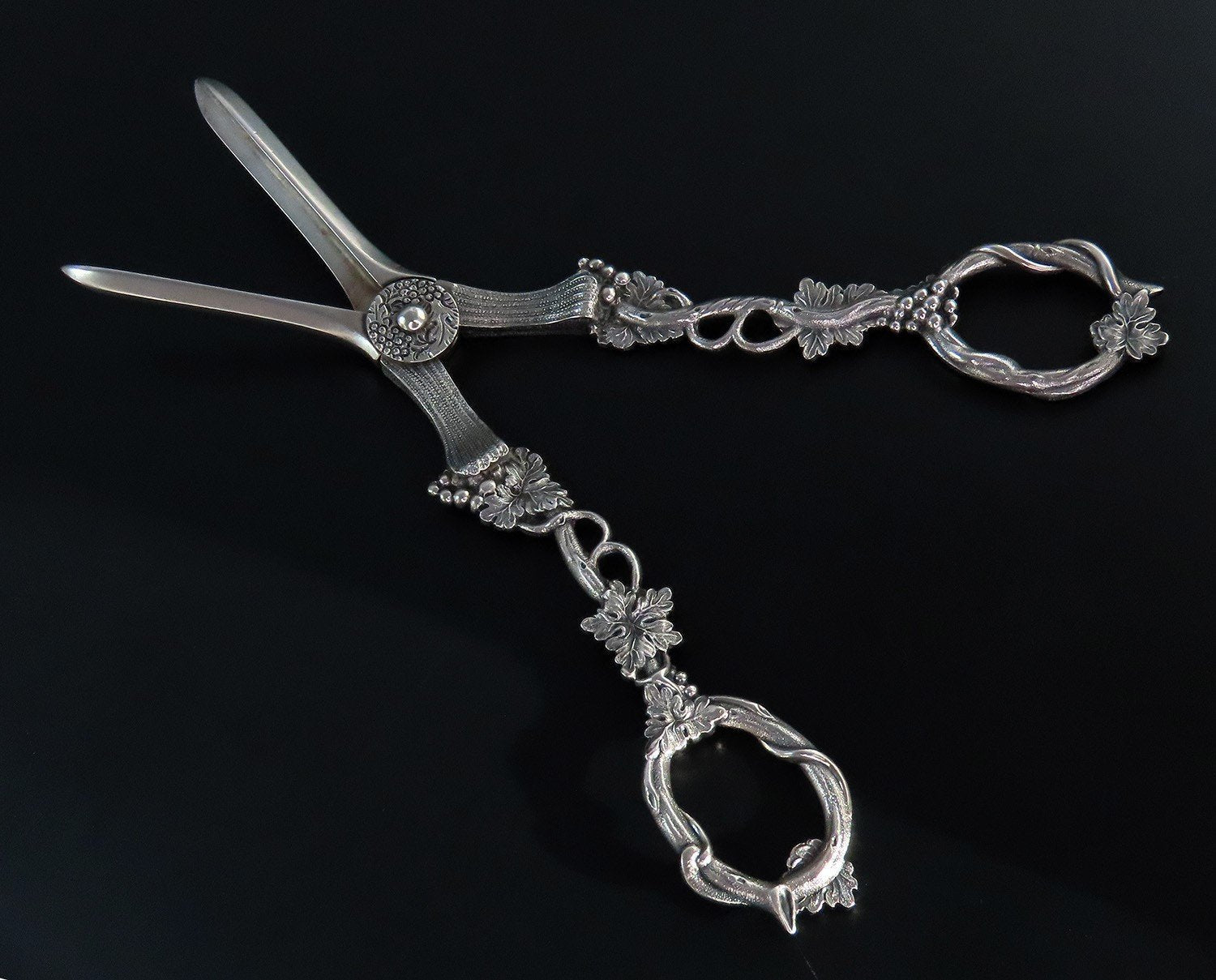 Great c 1845 Sterling Silver Grape Scissors High Relief Leaves 7 1/4"
