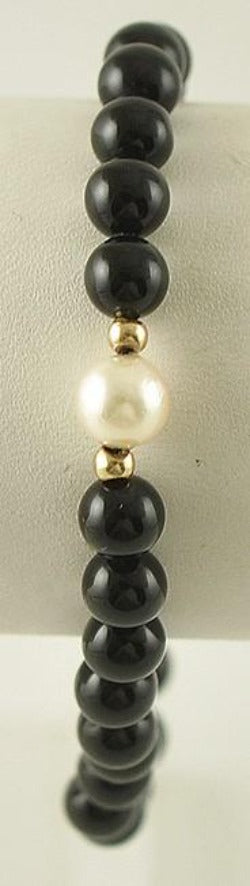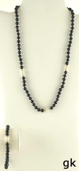 Both the bracelet and the necklace feature genuine black onyx beads, pearls and 14k gold beads.