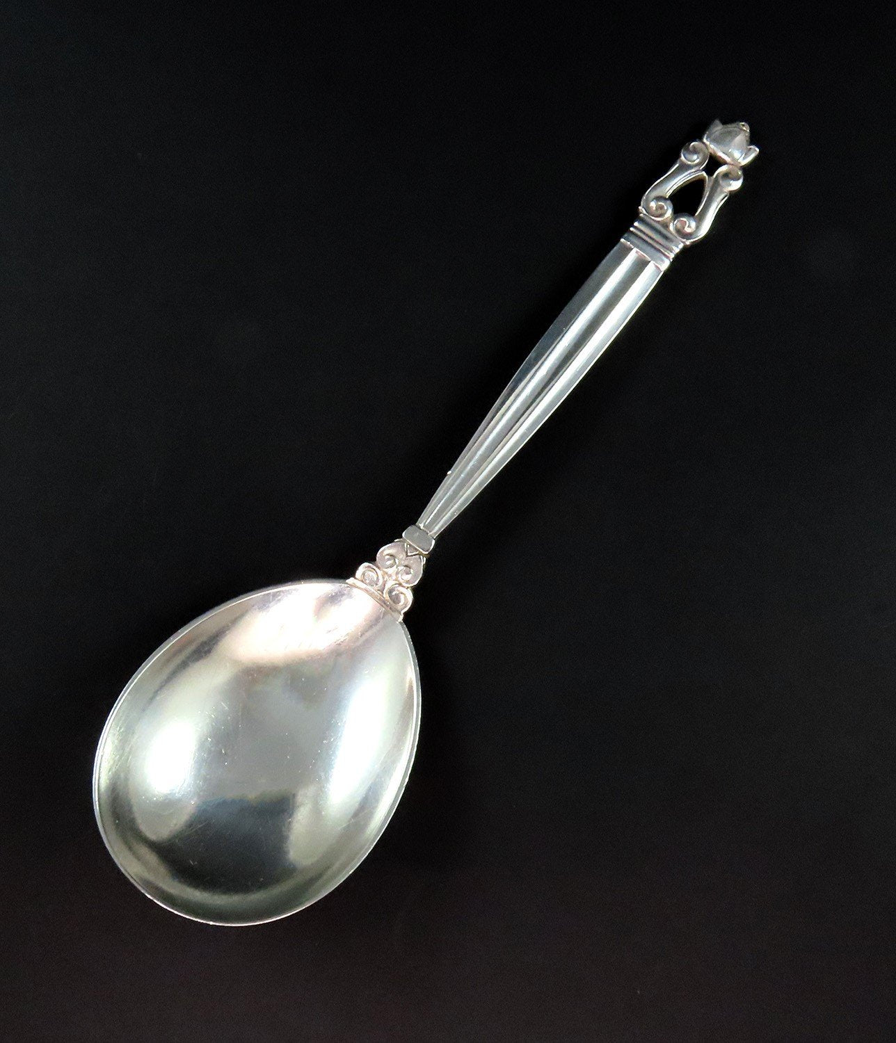 Great Georg Jensen Denmark Acorn Sterling Silver Serving Spoon No Mono 8"