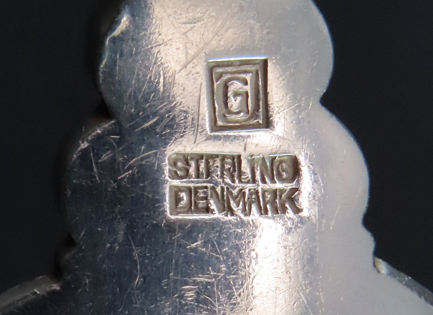 The reverse is marked sterling along with the maker's mark for Georg Jensen and Denmark.