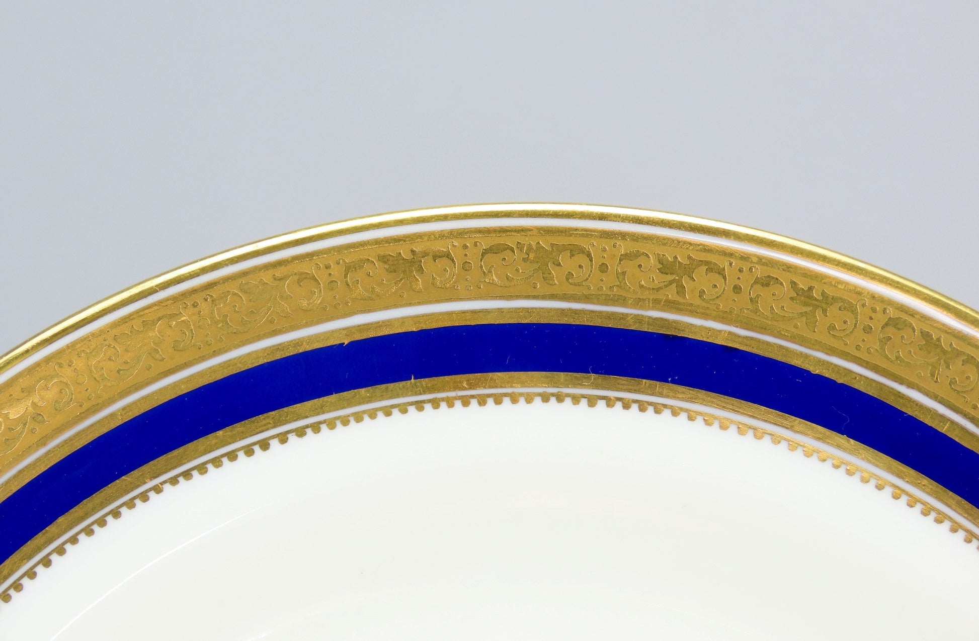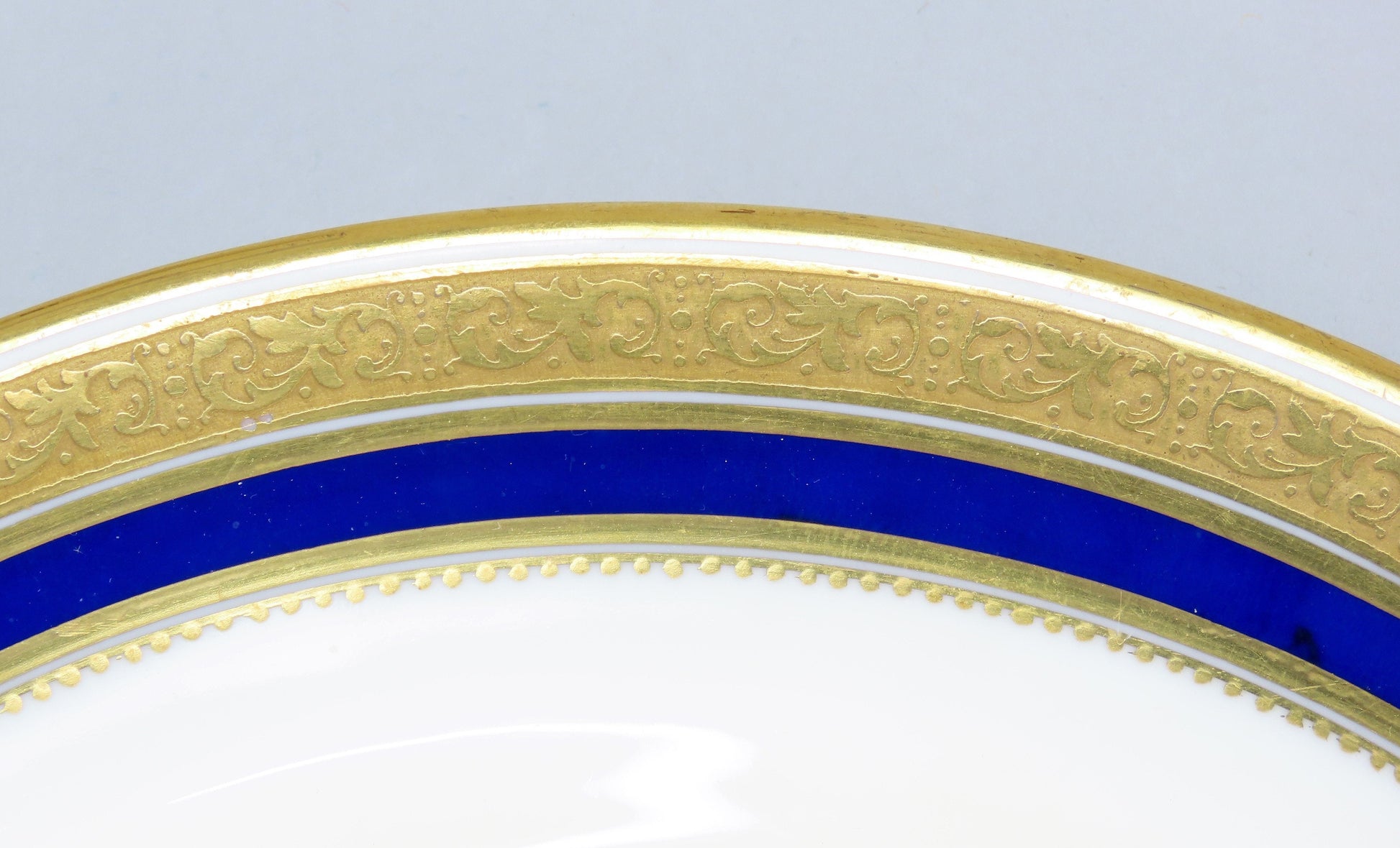 This piece is in excellent overall condition. There are a few minor knife marks throughout the set, but hardly worth mentioning. There are no breaks, no cracks, no chips, no crazing, and no repairs.
