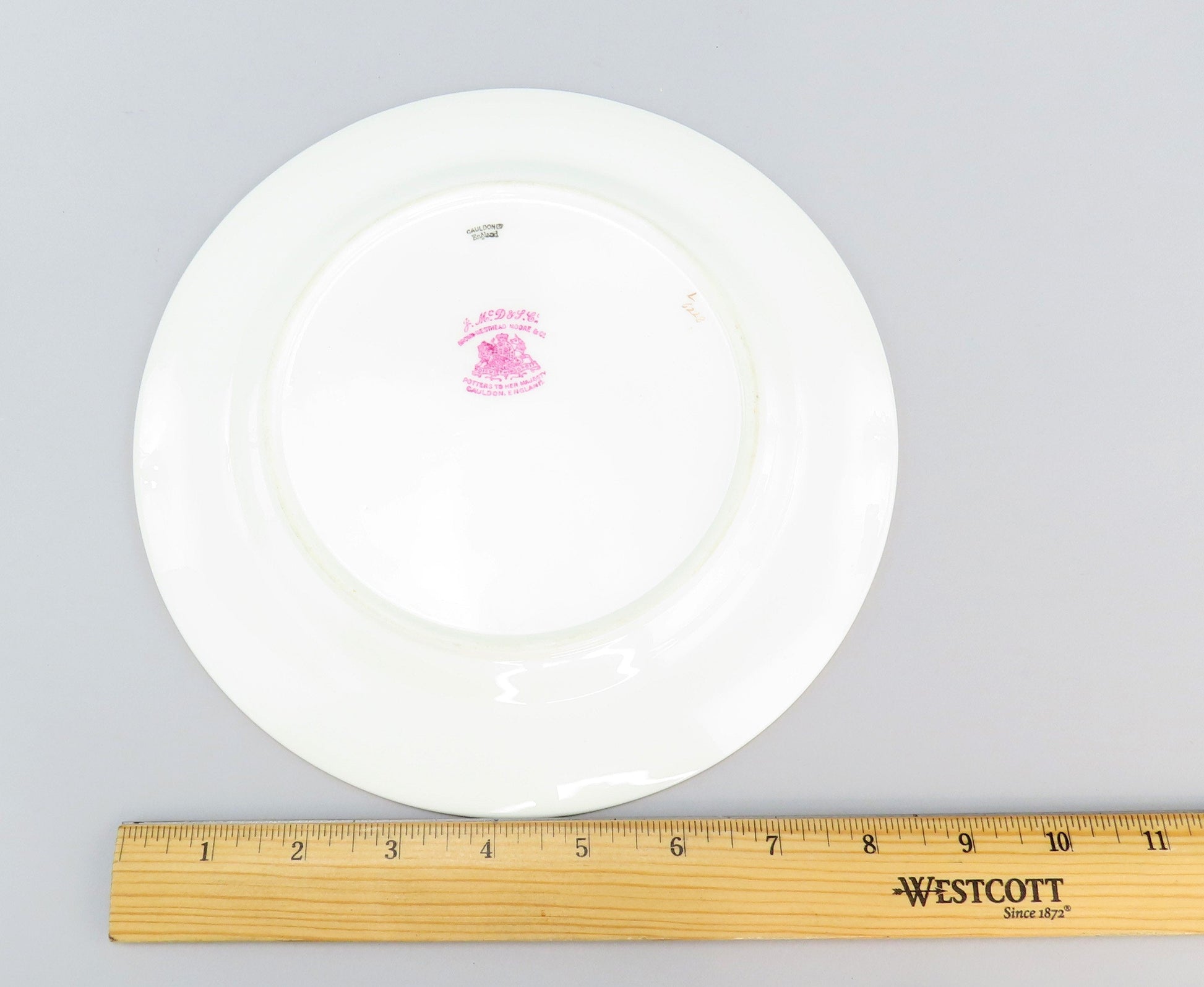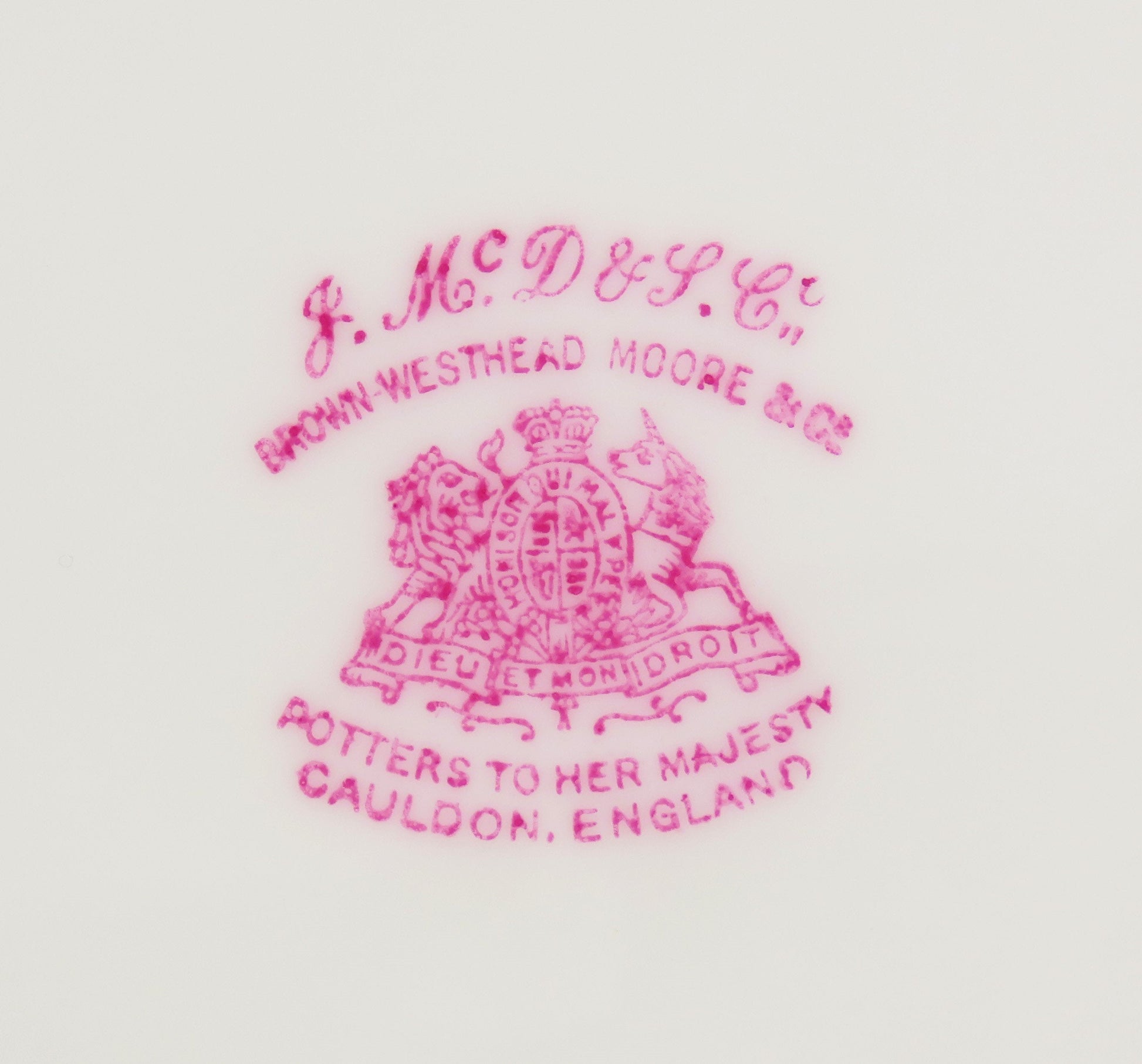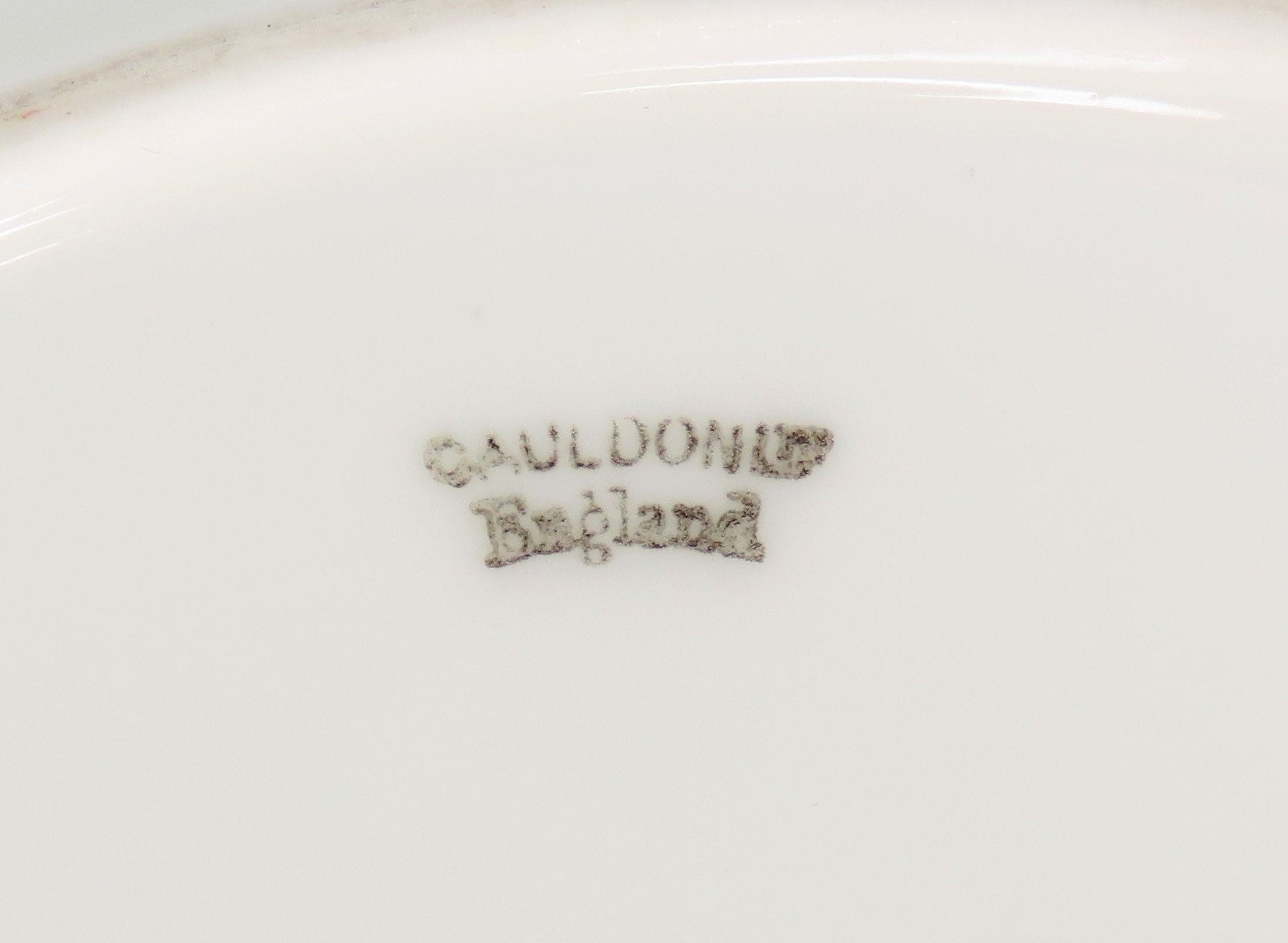 The underside is marked Cauldon England along with the import mark for Jones McDuffee and Stratton and the manufacturer Brown, Westhead, Moore & Co.
