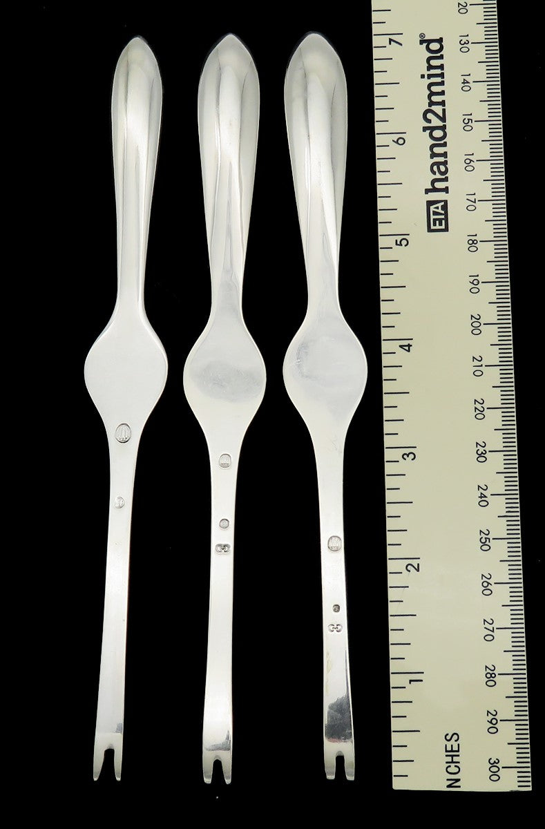 Great Silver Set 3 Danish Lobster Picks Carl M. Cohr c 1930 Fleur De Lis