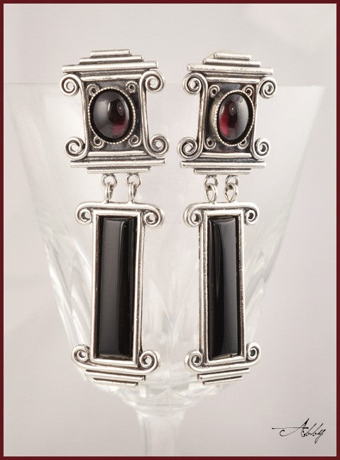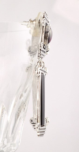 Great Sterling Onyx Garnet Ionic Column Shaped Earrings