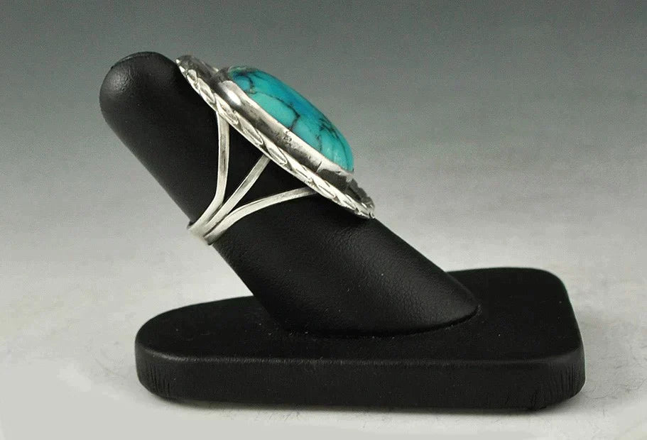 Great Sterling Silver and Genuine Turquoise Ring Size 6.75