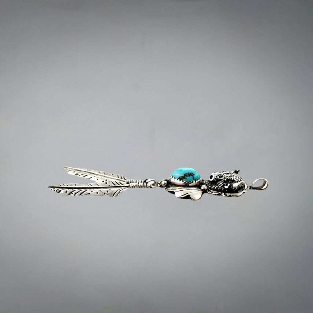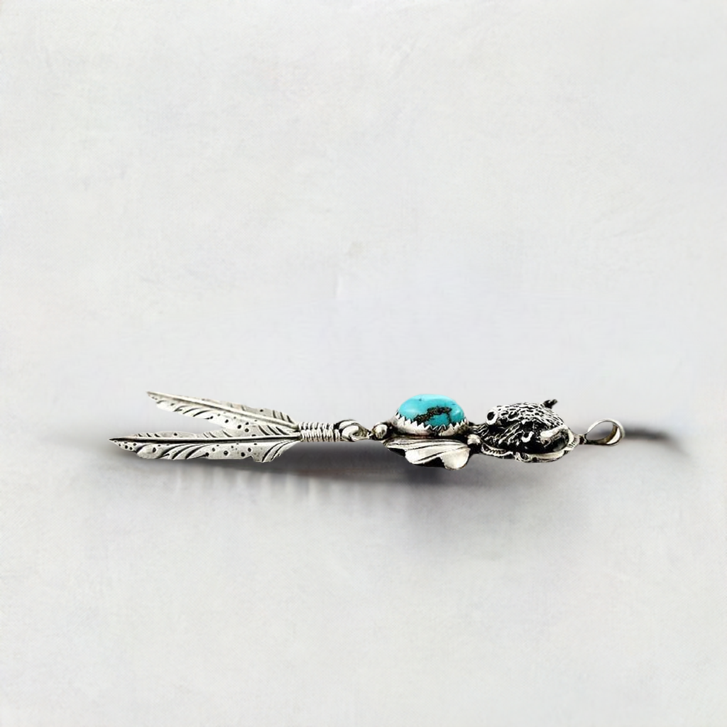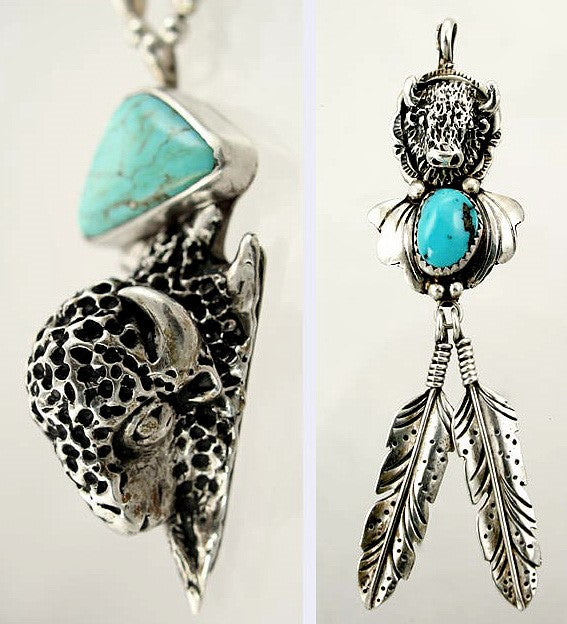 Hand Crafted Southwest Native American Sterling Turquoise Bison Necklace Pendant