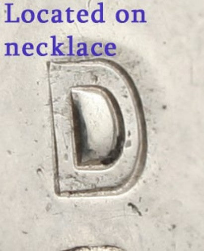 The back of the necklace pendant is marked with a D for the maker Don Dixon.