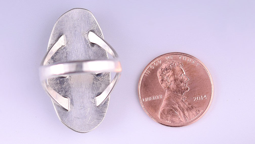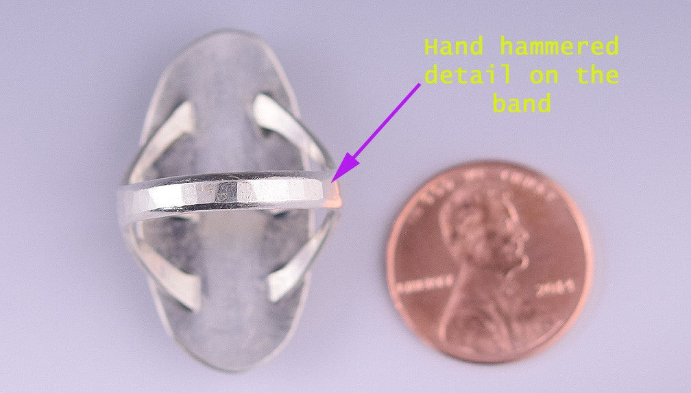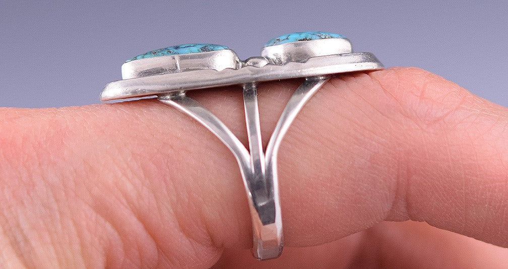 Hand Hammered Sterling Silver Ring w/ Turquoise and Silver Beads Sz 7.75