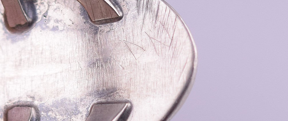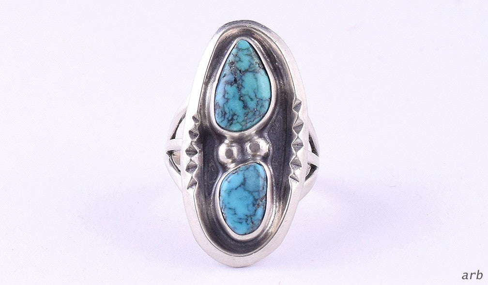 This piece features an oblong shape, set with silver beads and genuine blue-green turquoise.