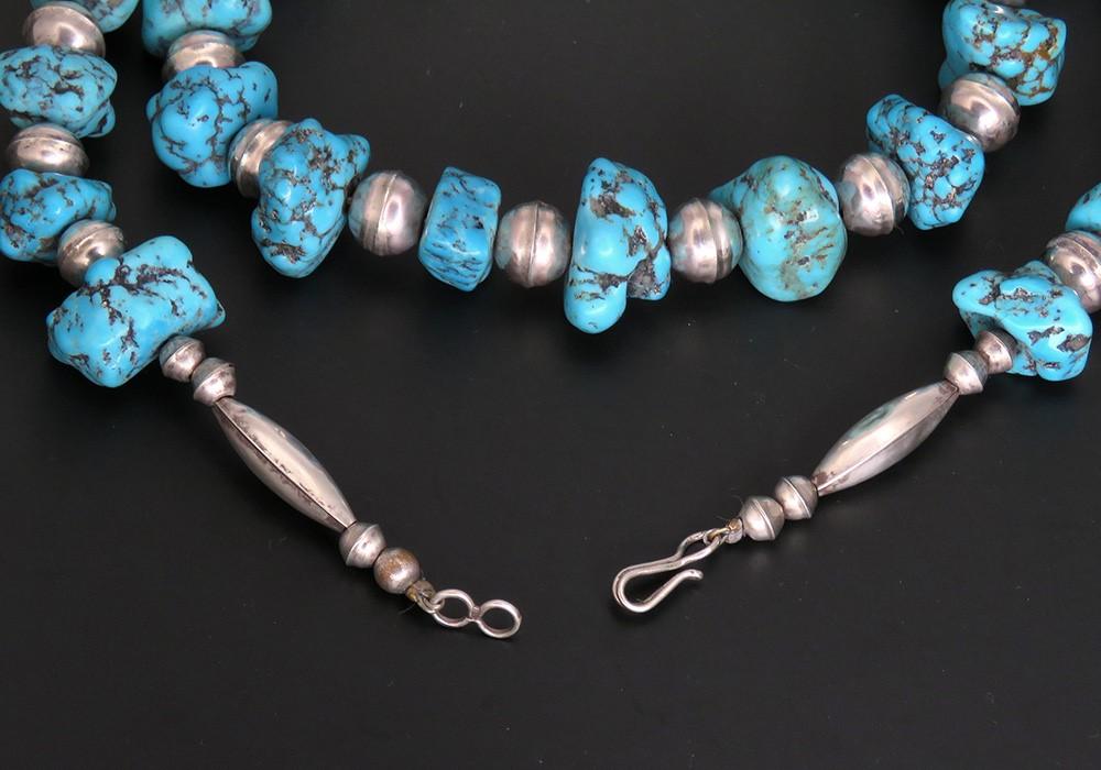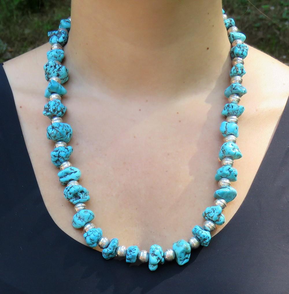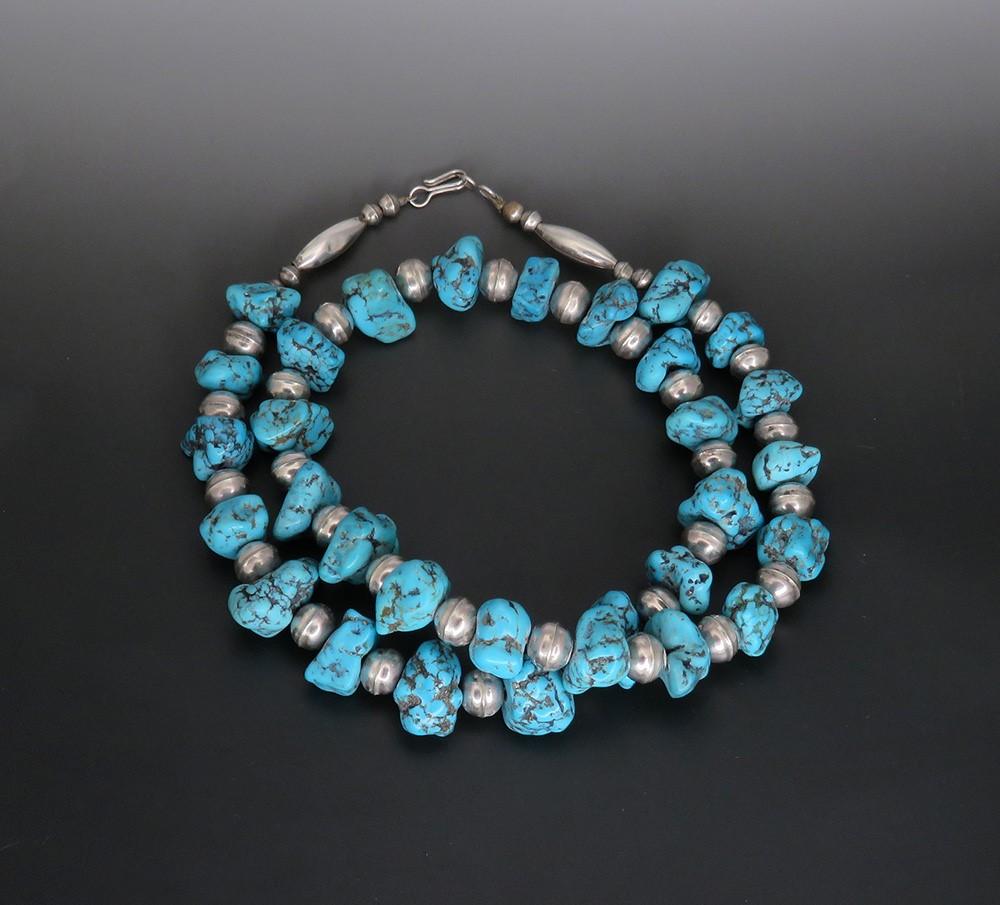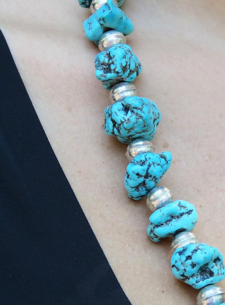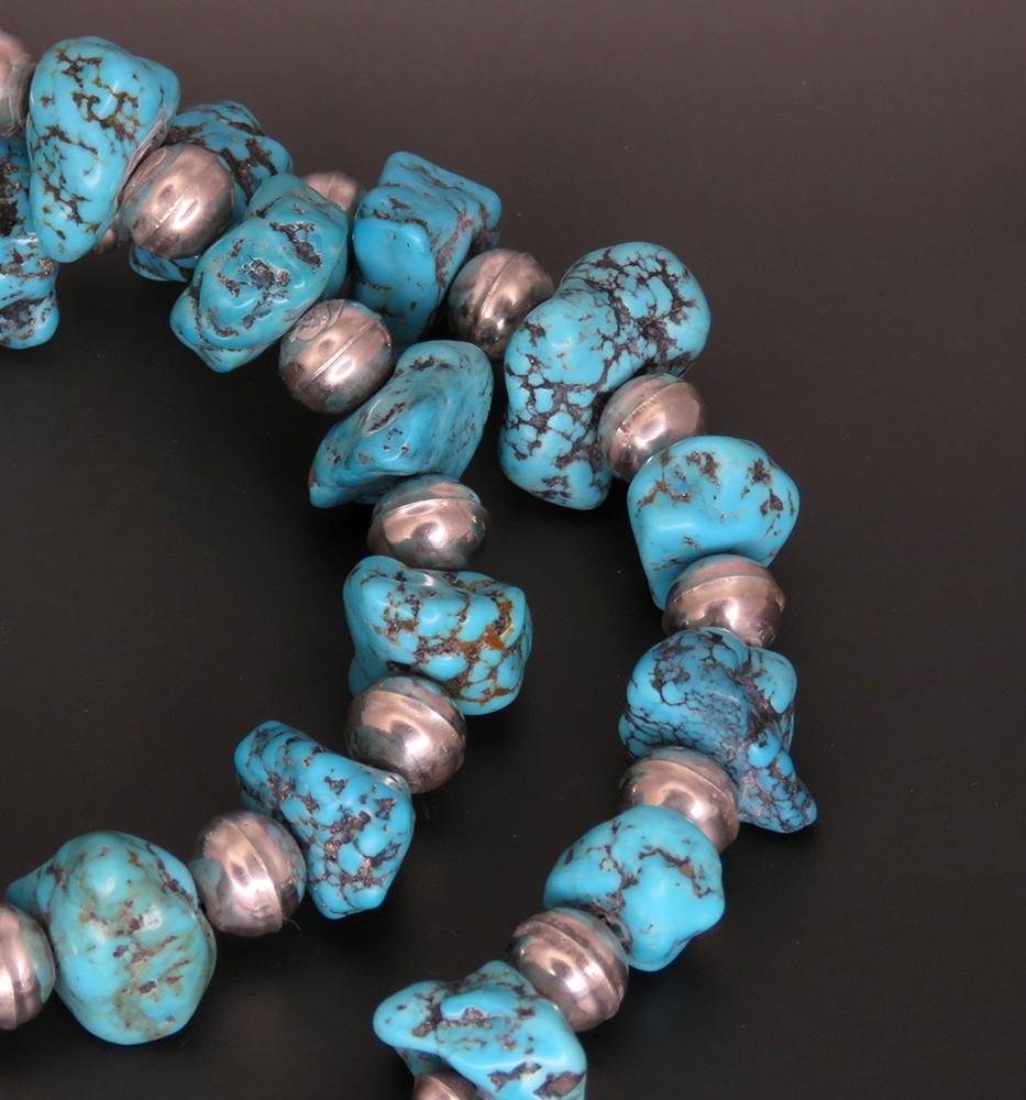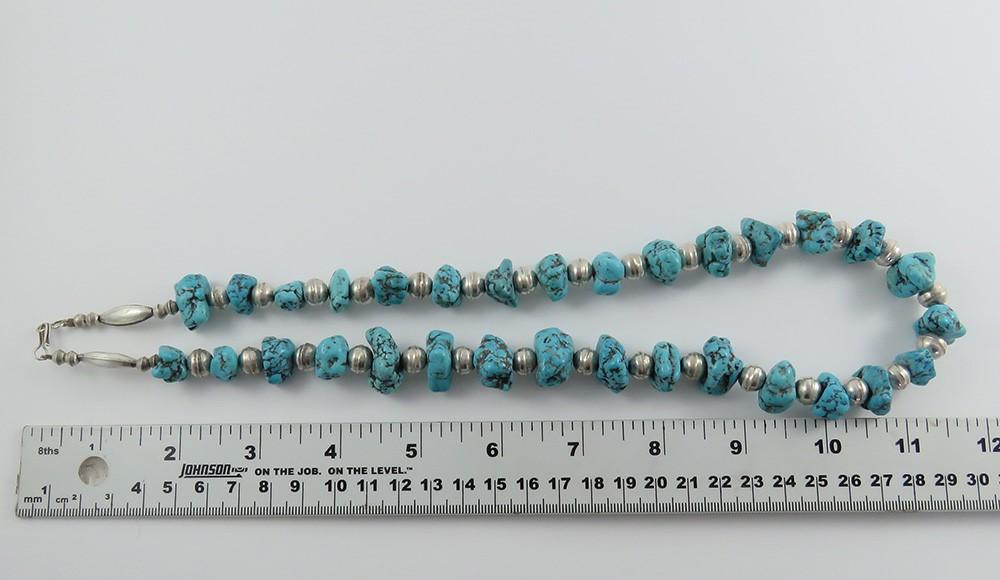 Handcrafted Native American Sterling Silver Turquoise Beaded Necklace