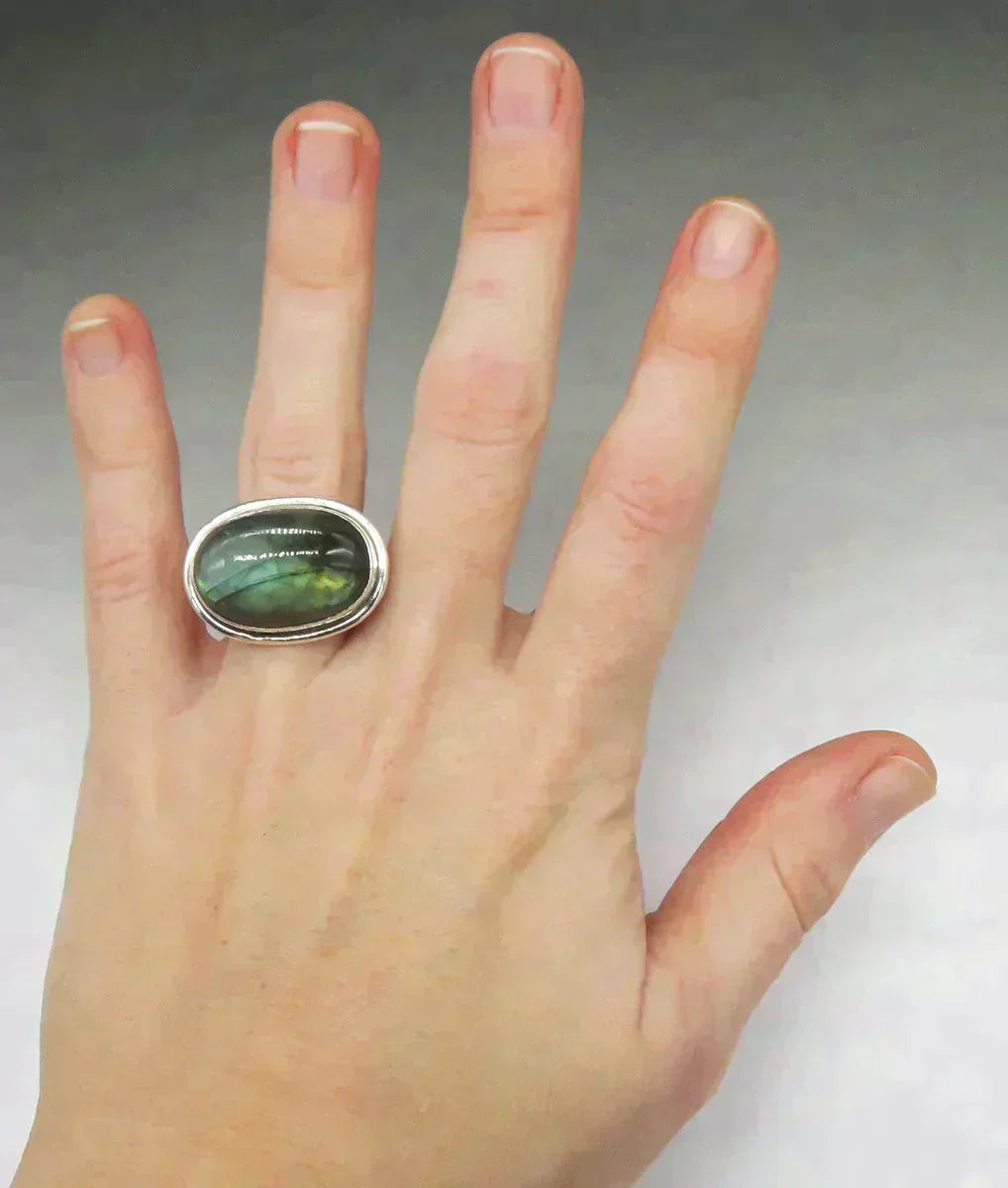Handcrafted Sterling Silver Labradorite Stone Cabochon Statement Ring