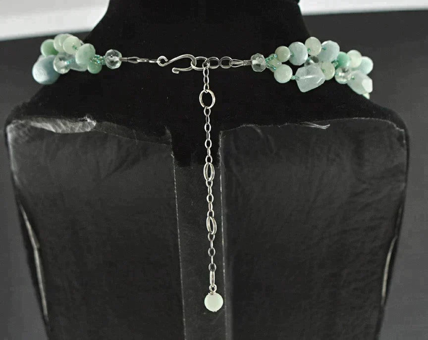 Handmade Quartz Beaded Necklace Seafoam Jade Tone Crystal Semi-Precious Stone