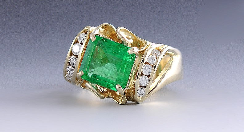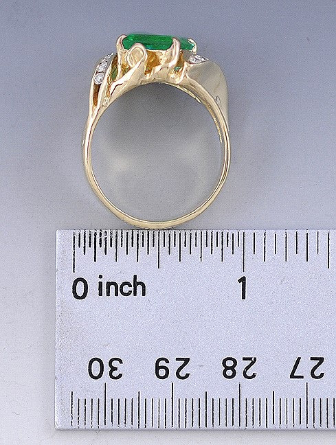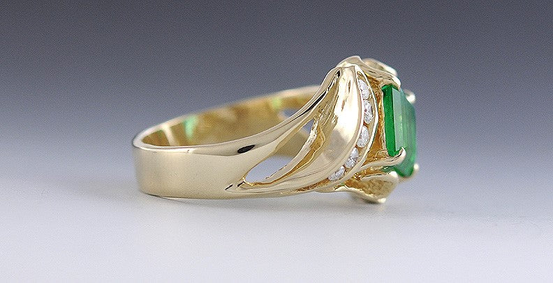 Handsome 14k Yellow Gold Lab Created Emerald and Diamond Ring Size 10.25