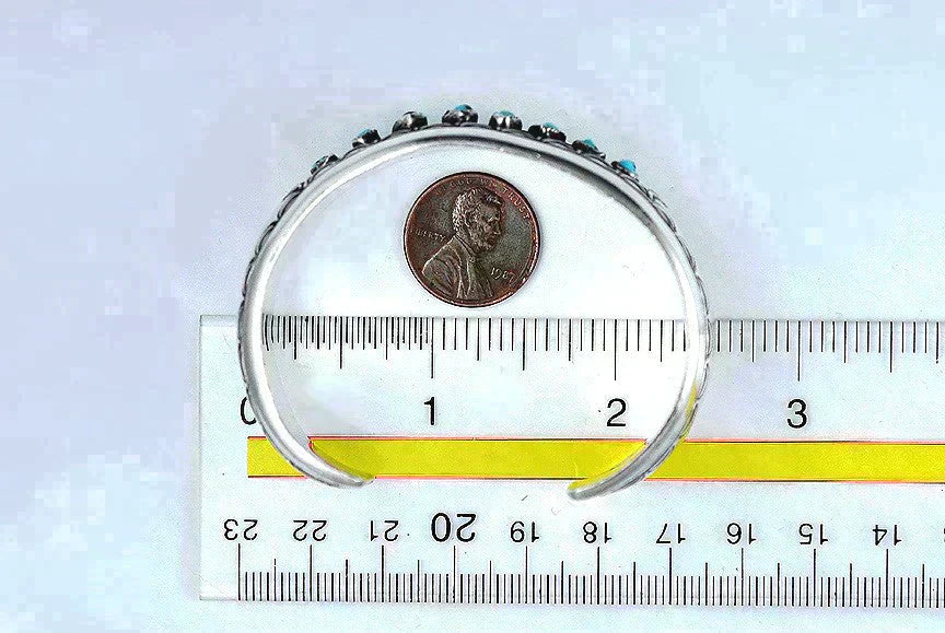 Handsome American Southwestern Silver Cuff Bracelet Bezel Set Turquoise Stones