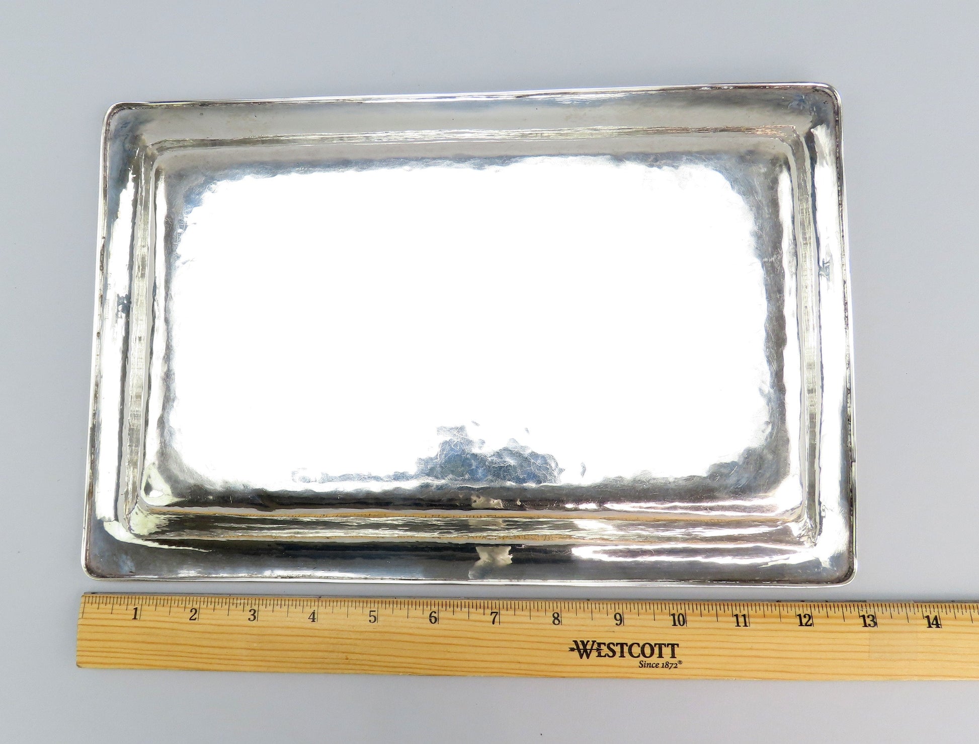 Handsome German 800 Silver Hand Hammered Rectangle Tray No Mono 13" Long