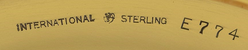 The underside of the chalice is stamped International as well as sterling. The patten is stamped sterling.