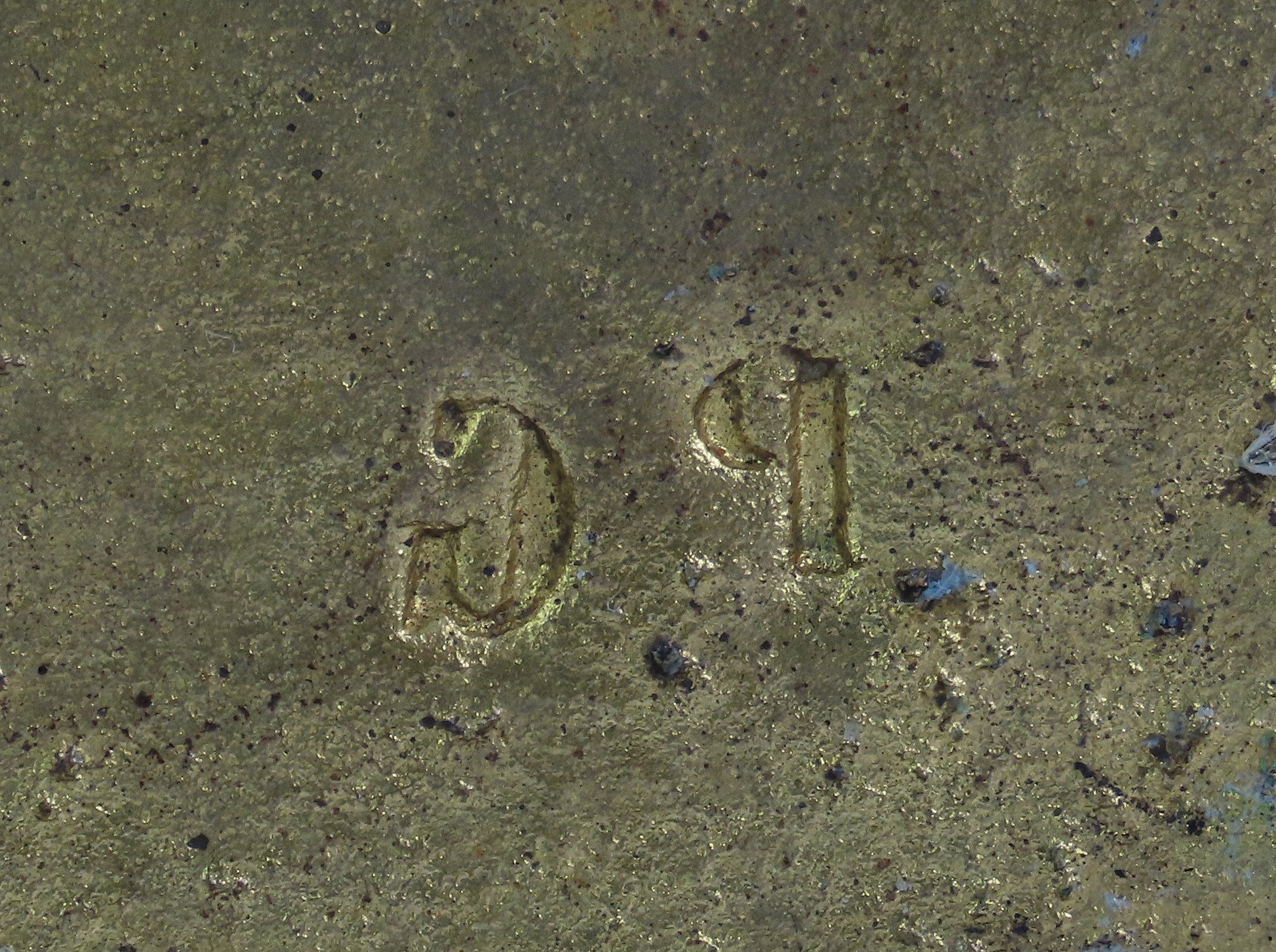Both candlesticks are stamped with a mark that looks like PG, curiously reversed.