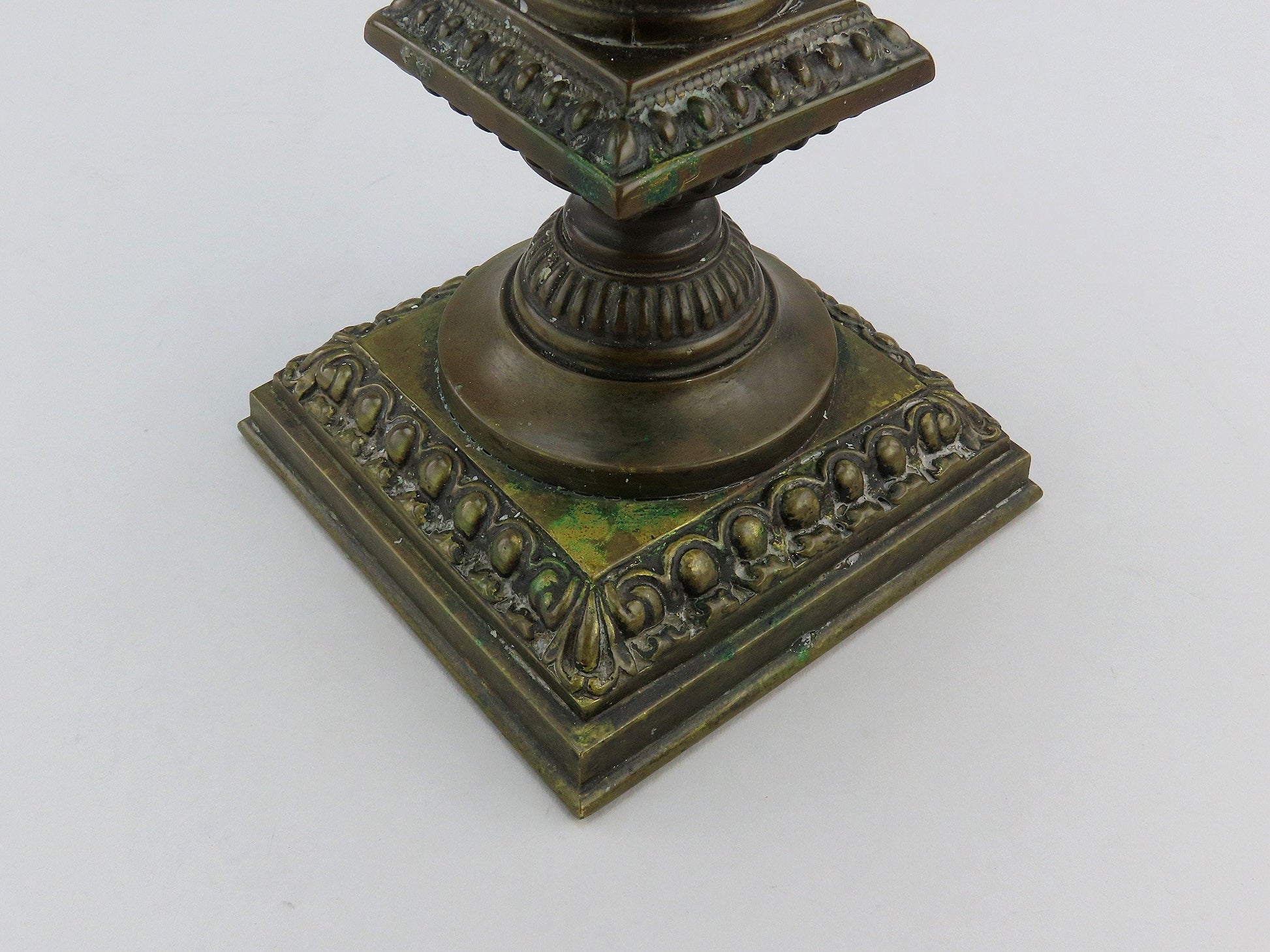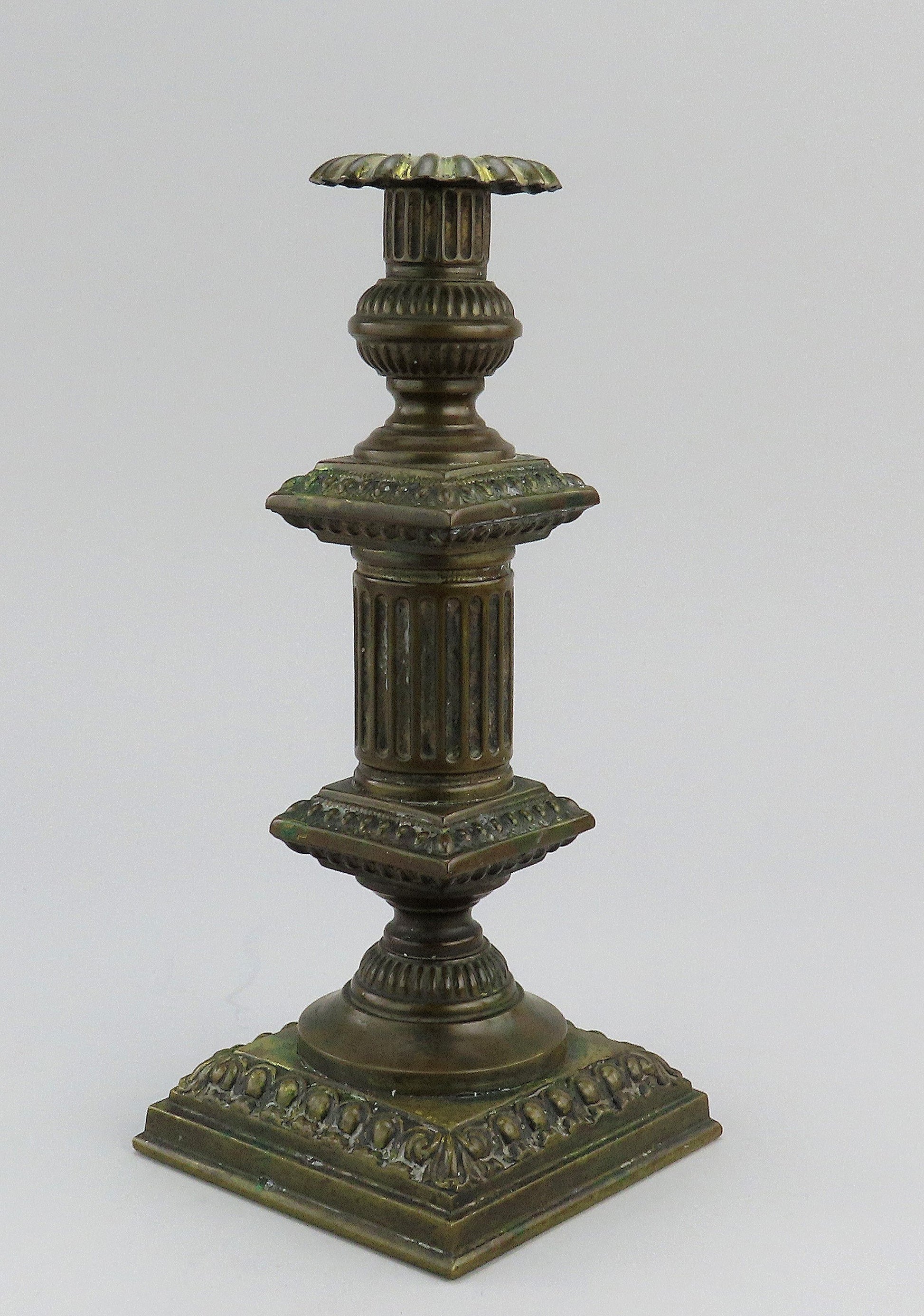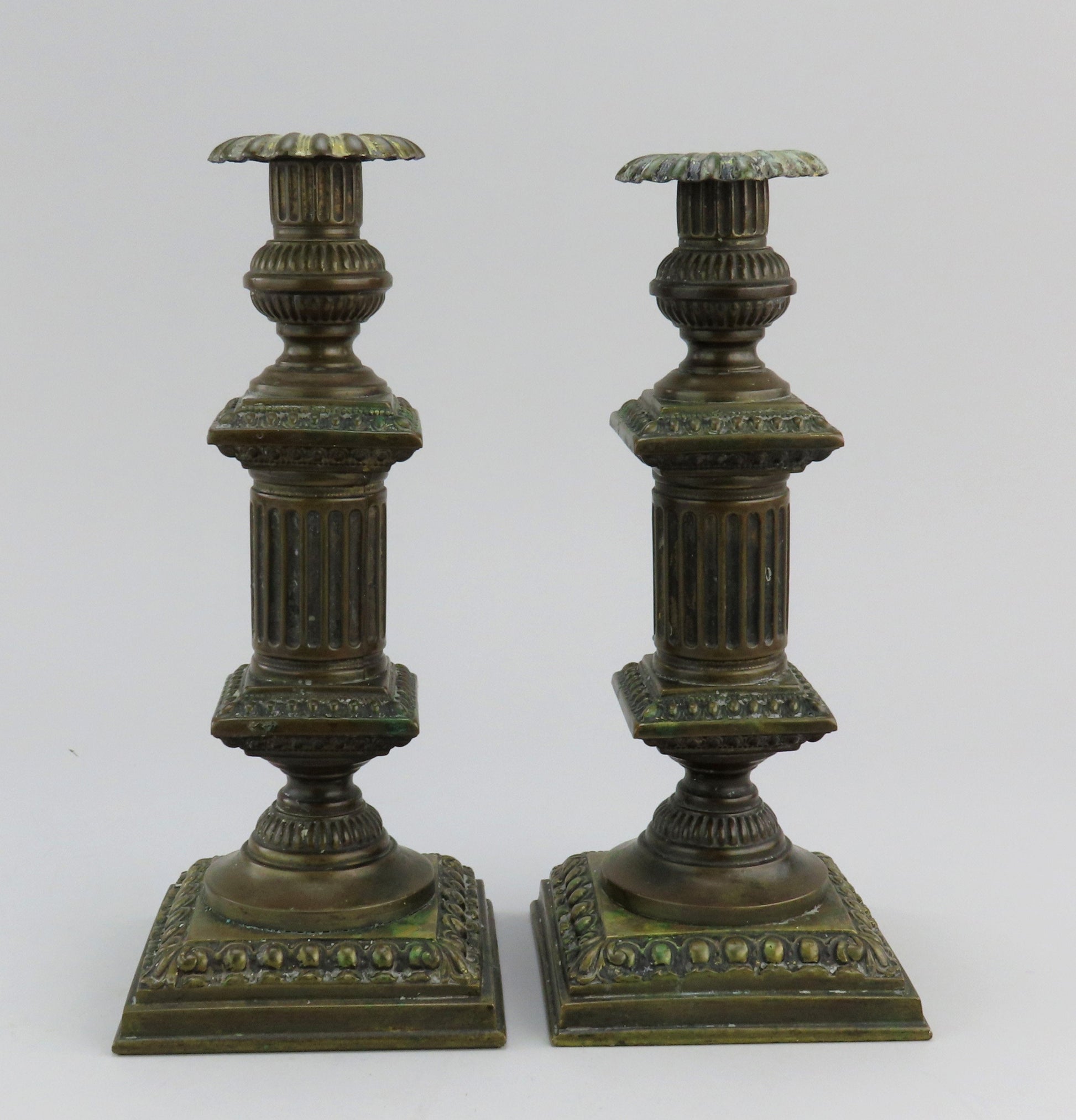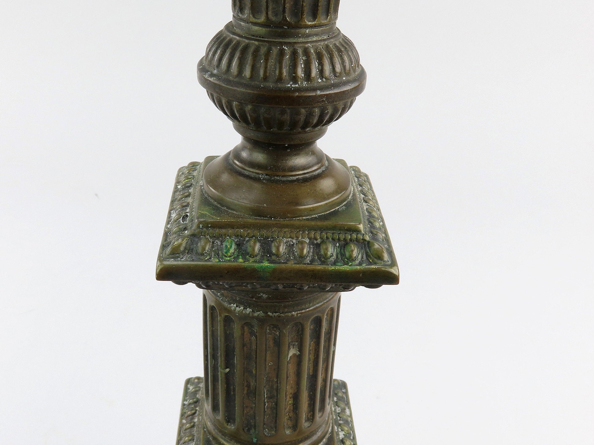 Handsome Pair Antique European Bronze Column Form Candlesticks