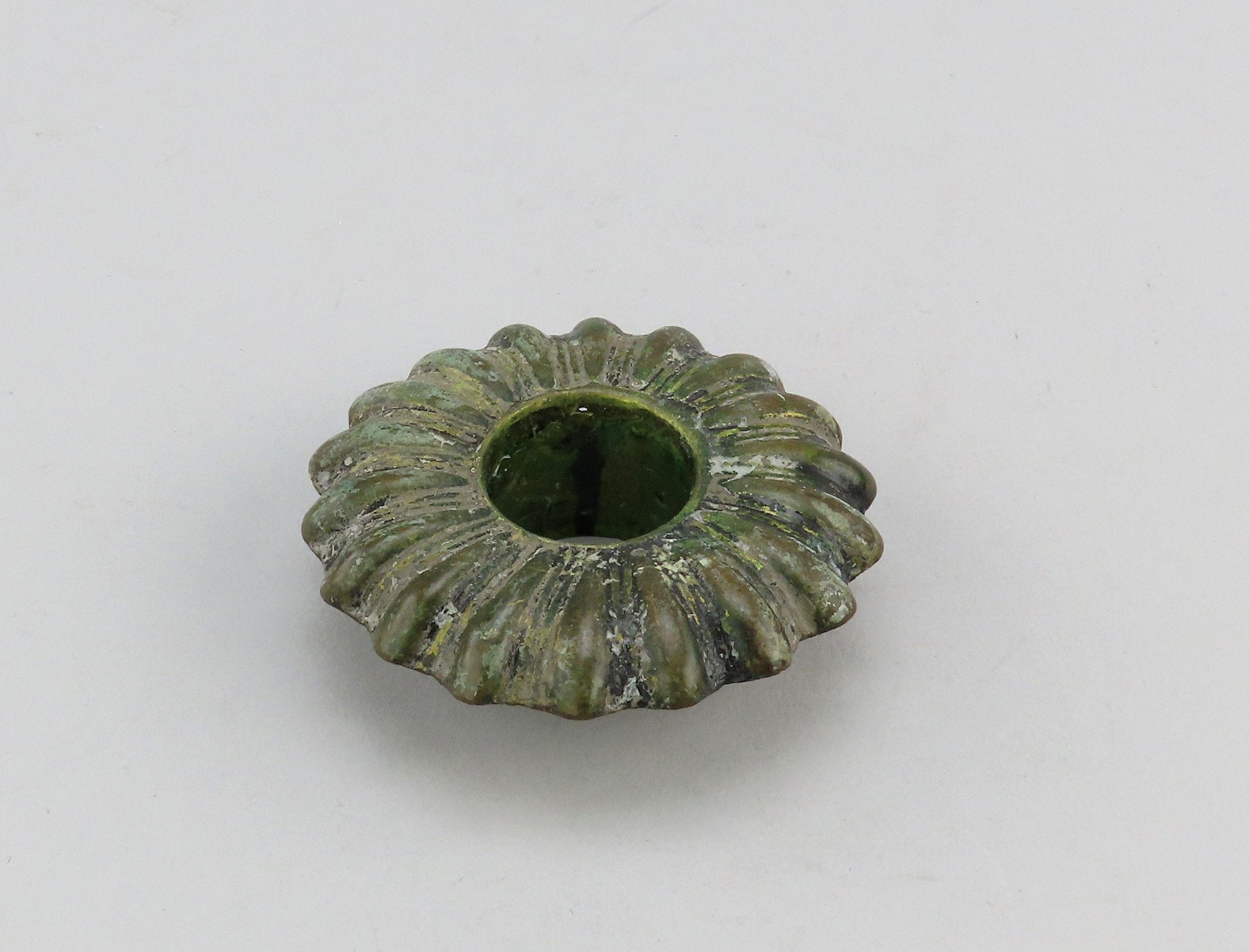 This pair is in excellent condition. These candlesticks would benefit from a good cleaning, as we opted to leave them mostly as we acquired them; there is green and lighter color wax residue and dust in the crevices. Some variations in tone of the patina, notably where there has been wax, but no corrosion. There are no splits, no dents, no breaks, and no repairs.