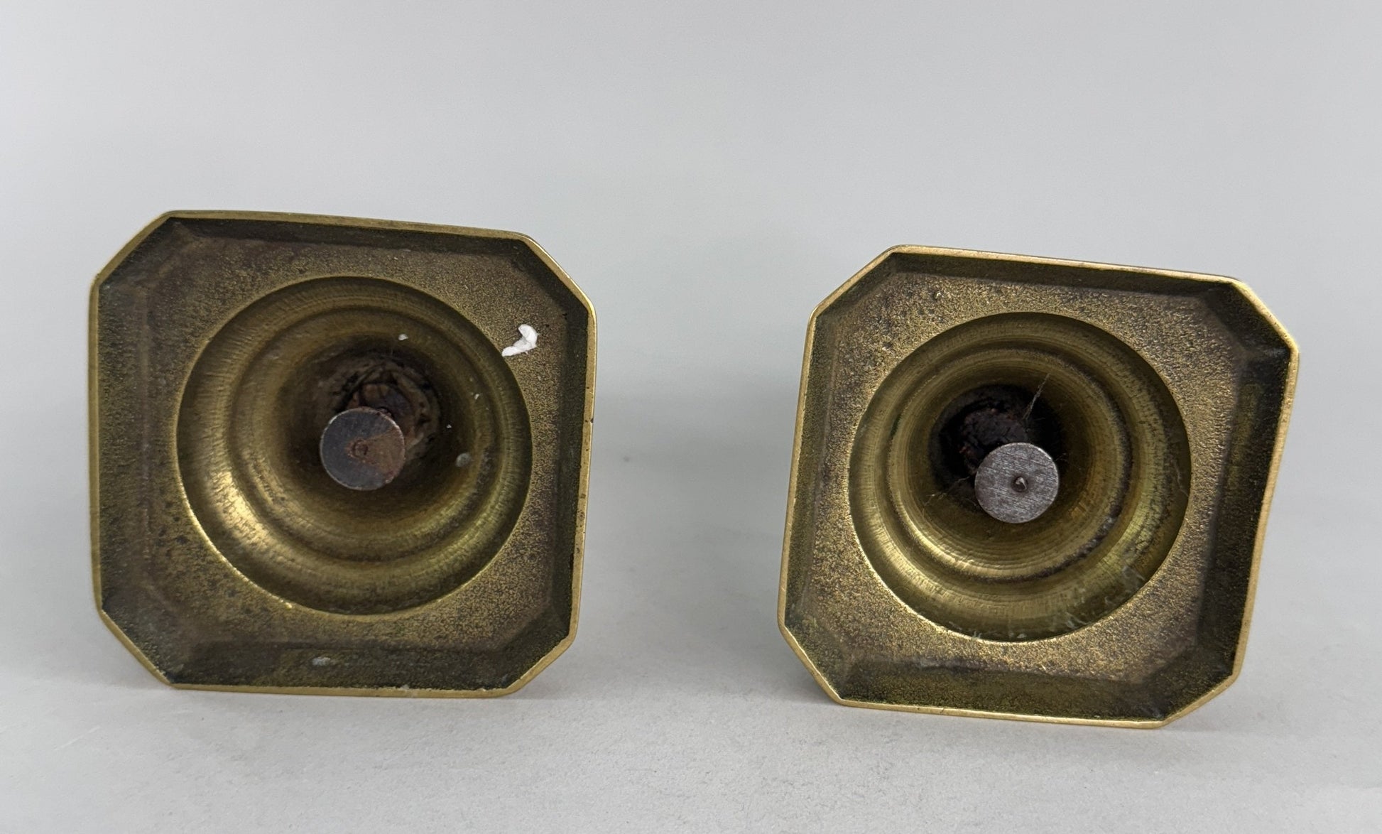 Handsome Pair c1850s English Victorian Brass Push Up Cut Corner Candlesticks