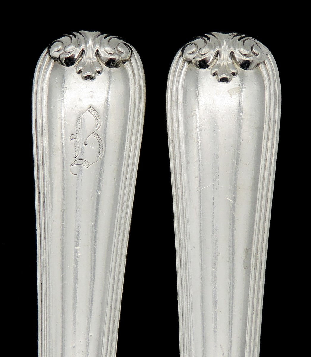 This fruit knife set is in great condition. There are no dents or dings to the ends of the handles, as is common with many silver knives. The blades are clean and ready for use. There are no breaks or repairs.