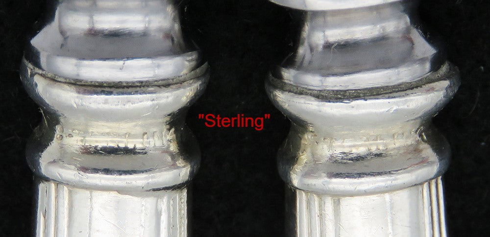 Each knife handle has been marked sterling and each blade is marked stainless. The sterling marks are quite worn but we were able to make them out.