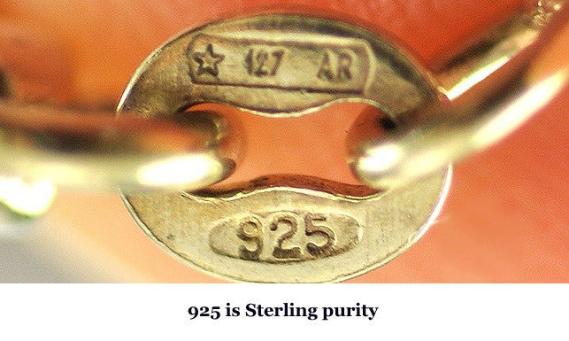 It is stamped "925" for sterling silver. It is also marked for Italy.