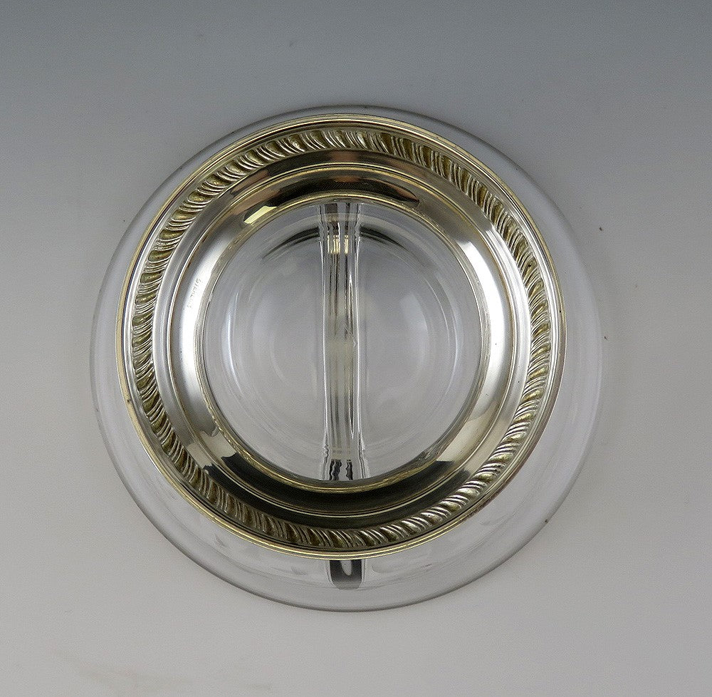 Heisey Divided Glass Bowl with Sterling Silver Base Condiment Olives Nuts Relish
