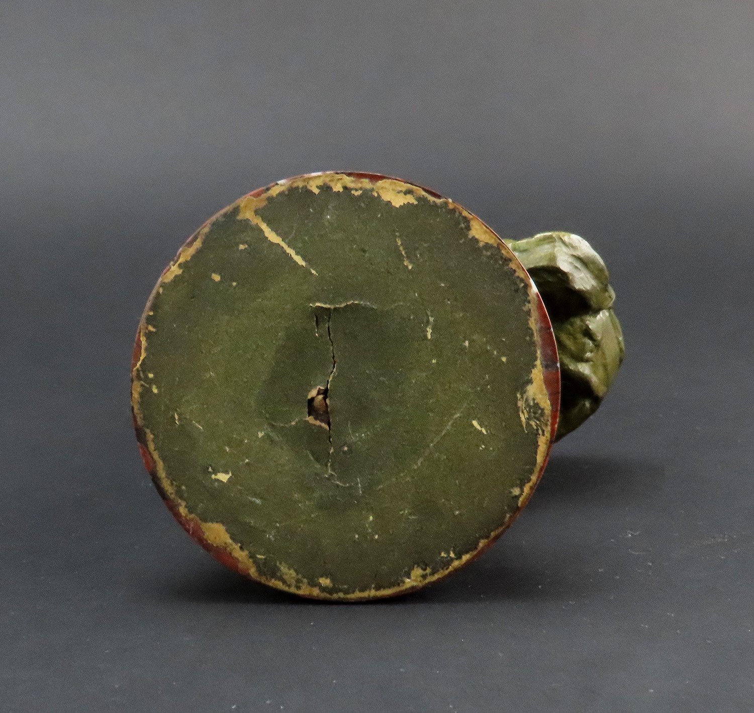 The bronze stands about 8 inches tall and measures about 4 x 3 inches.