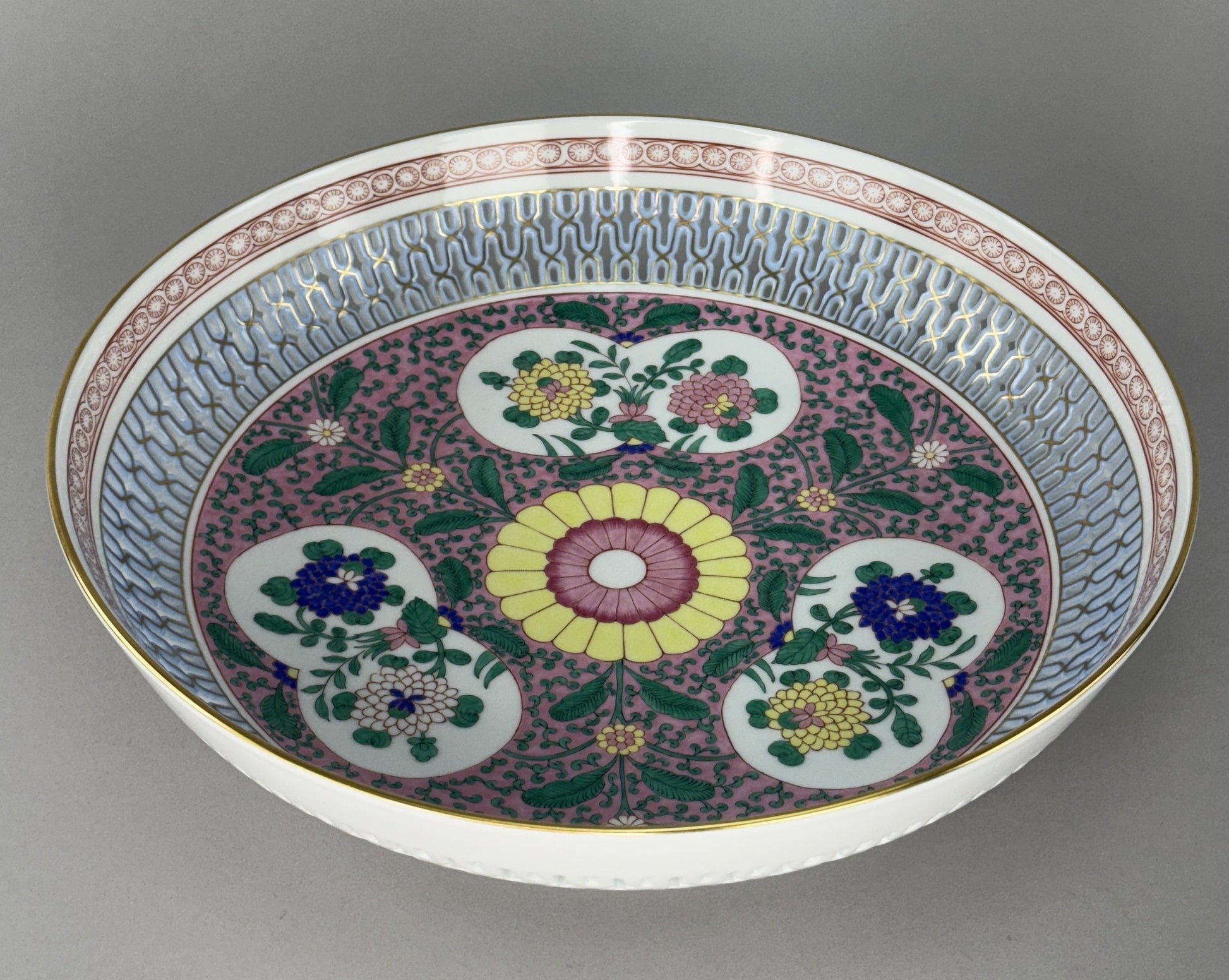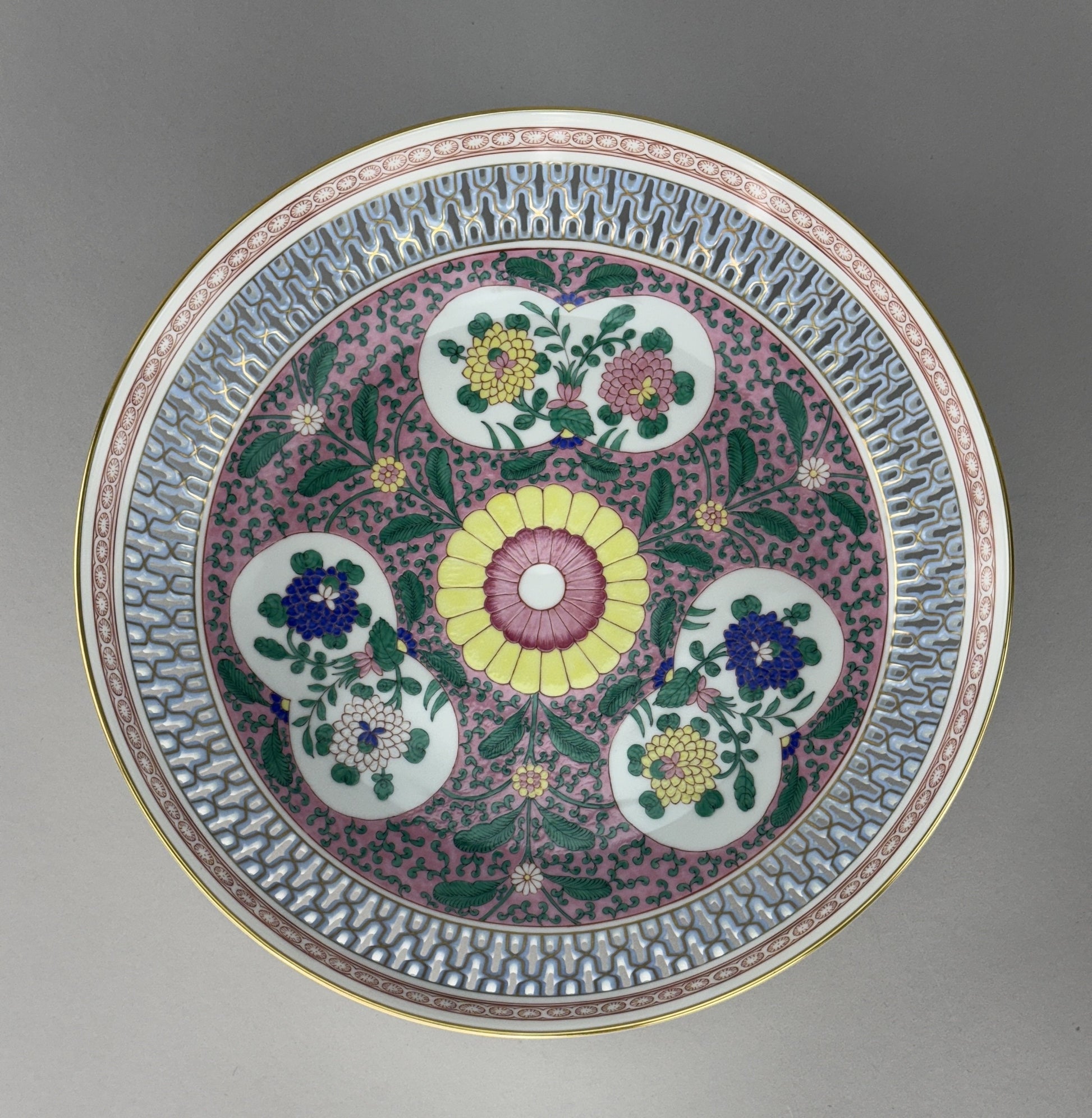 Herend Handpainted Emaille Rose ERS Reticulated 10 7/8" Bowl w Artist Signature