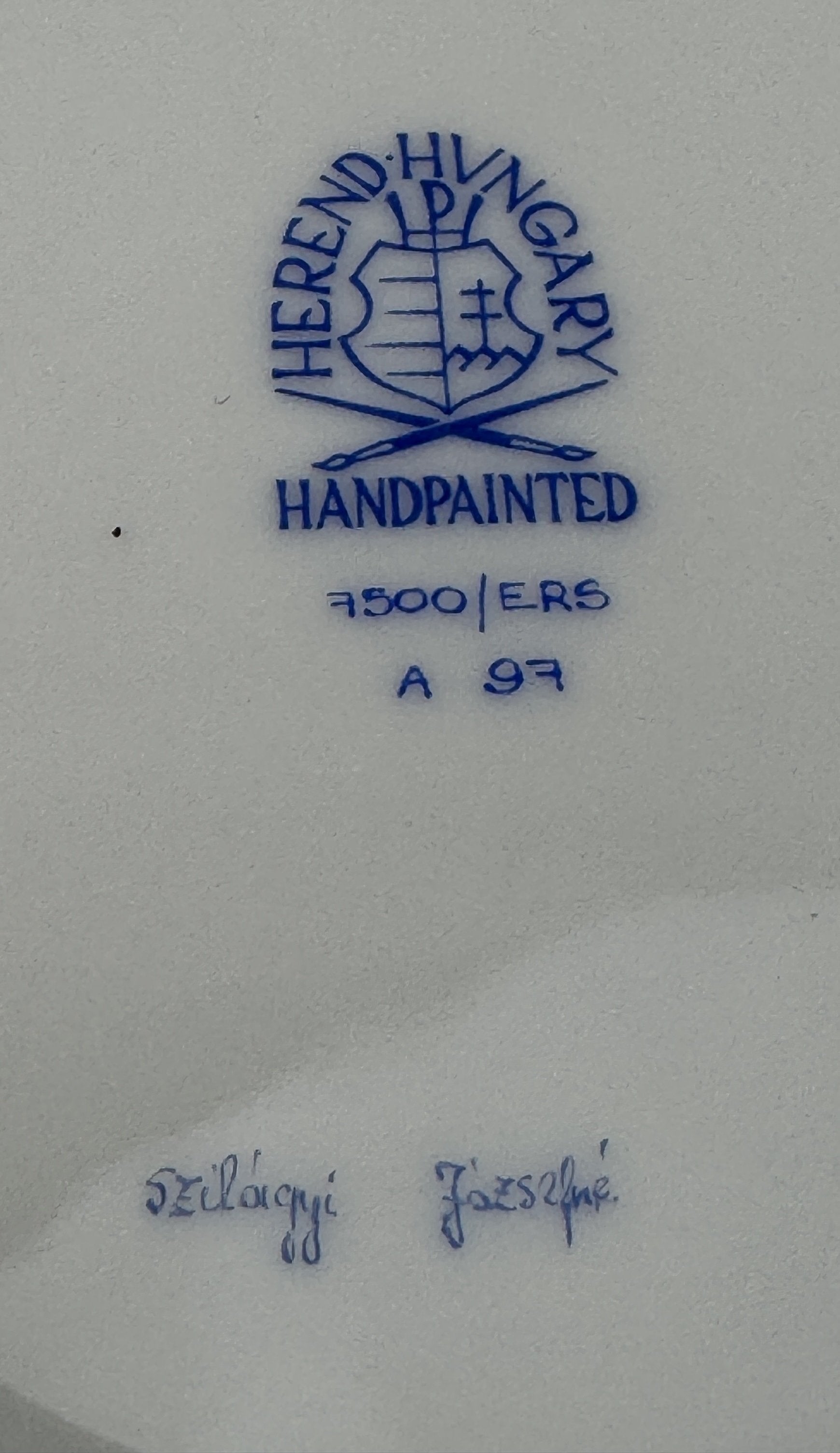 The underside of the bowl is signed Herend, Hungary and “Handpainted” with pattern/decoration numbers 7500/ERS A97 beneath. There is an also an artist signature, which is a good indication this is a piece of exceptional quality.
