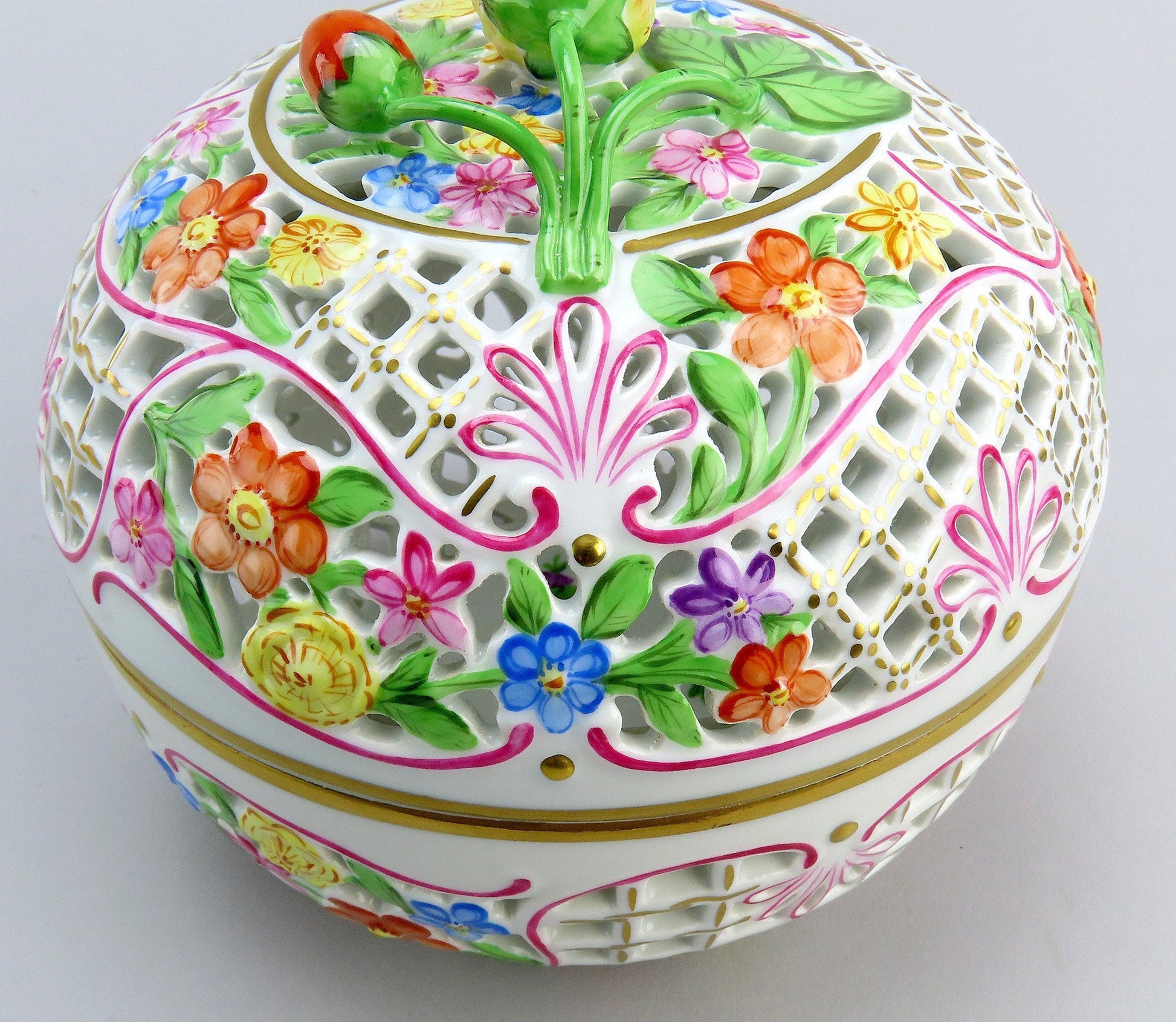Herend Handpainted Reticulated Potpourri Jar Bonbon Trinket Box 6212 C 6"