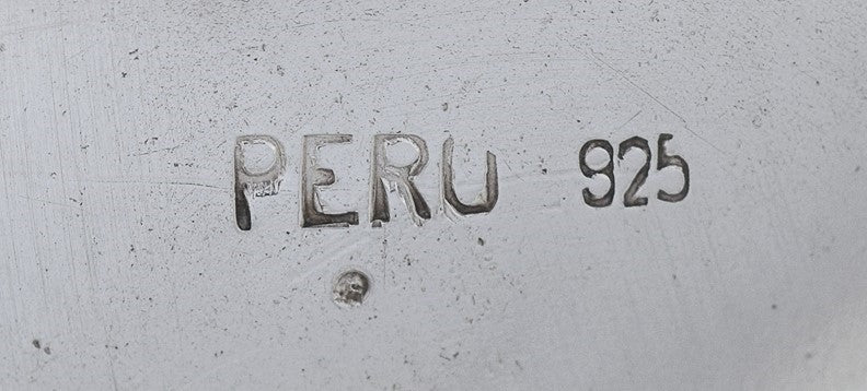 The underside of the piece is stamped Peru and 925 for sterling (925) purity silver.