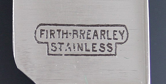 The blades are all marked Firth Stainless. As mentioned earlier, the knives come from a Spanish flatware set in which all the pieces but the knives were marked for the location of manufacture and 916 silver purity. We have tested the handles with nitric acid and guarantee the handles to be 916 silver.