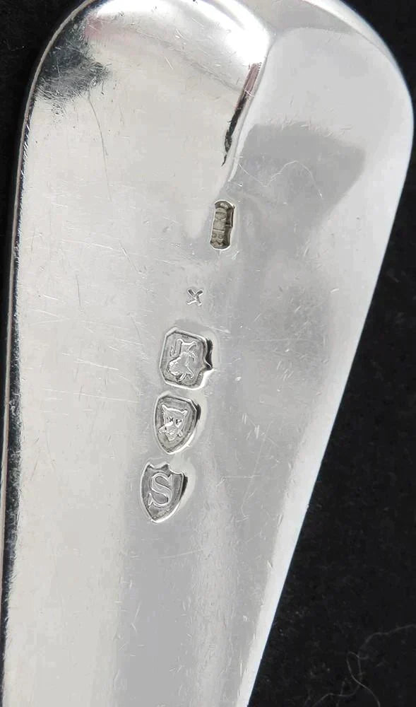 The back of the handle is marked with the leopard’s head for London, the lion passant for sterling silver, a date letter S for the year 1893 and a maker’s mark.