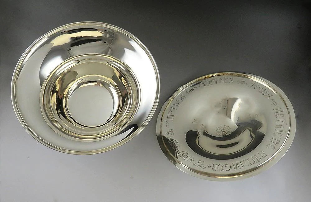 Huge Antique 1919 Marie Zimmermann Sterling Silver Covered Bowl/Dish 11 1/4"