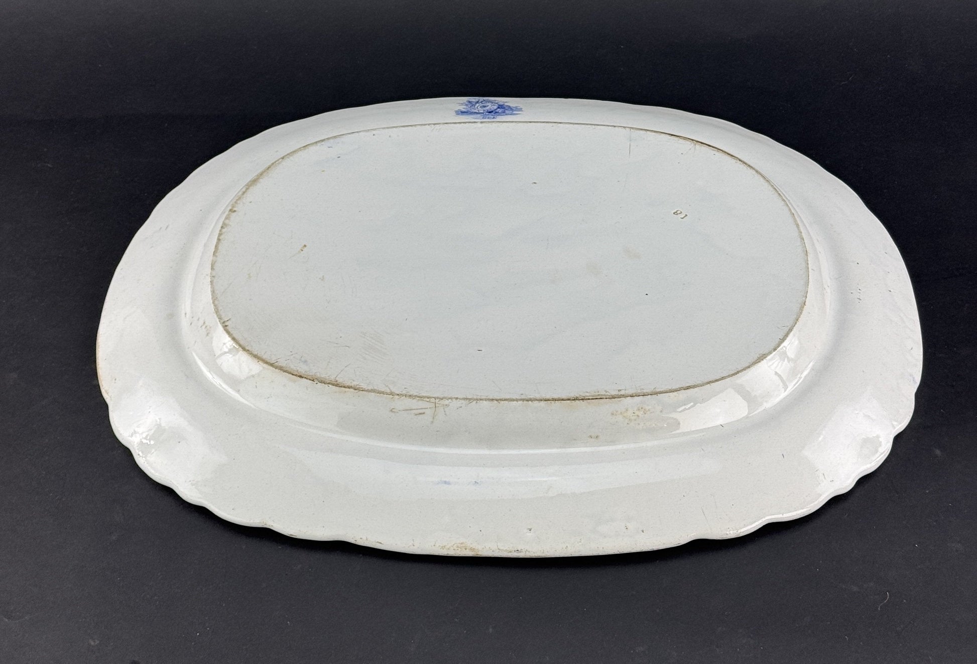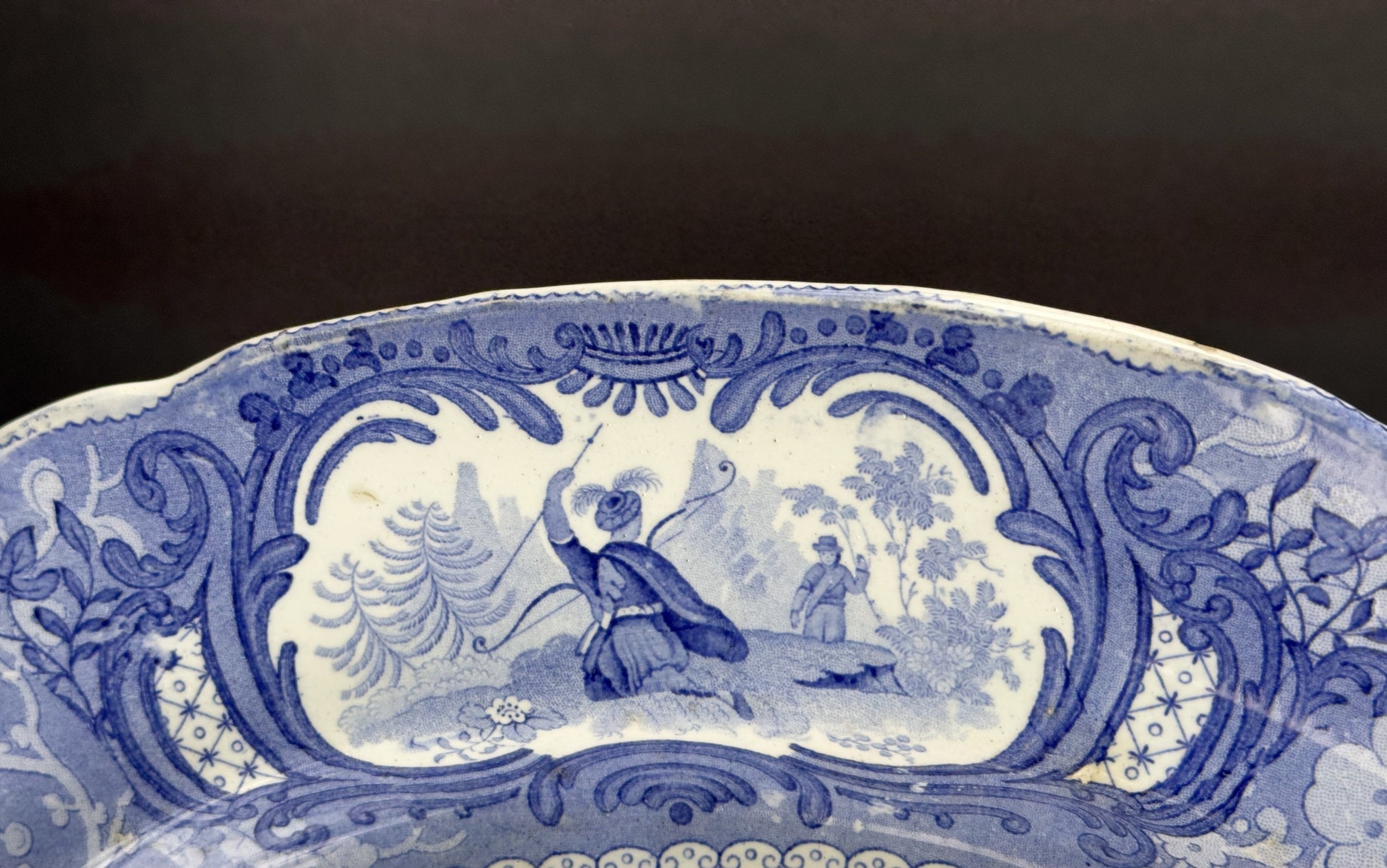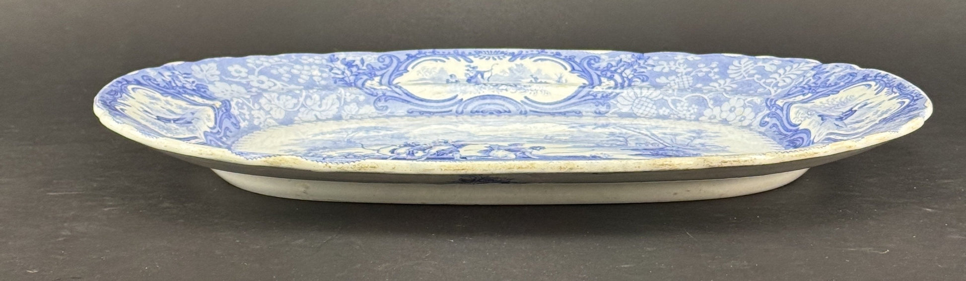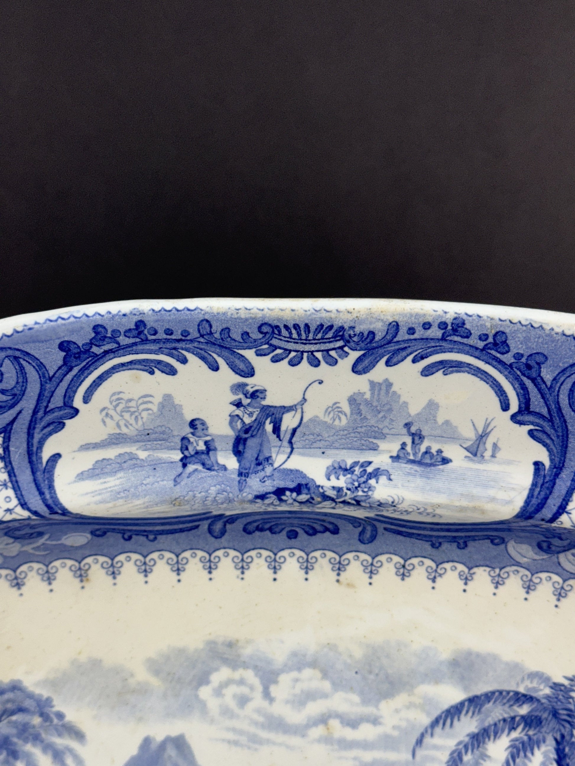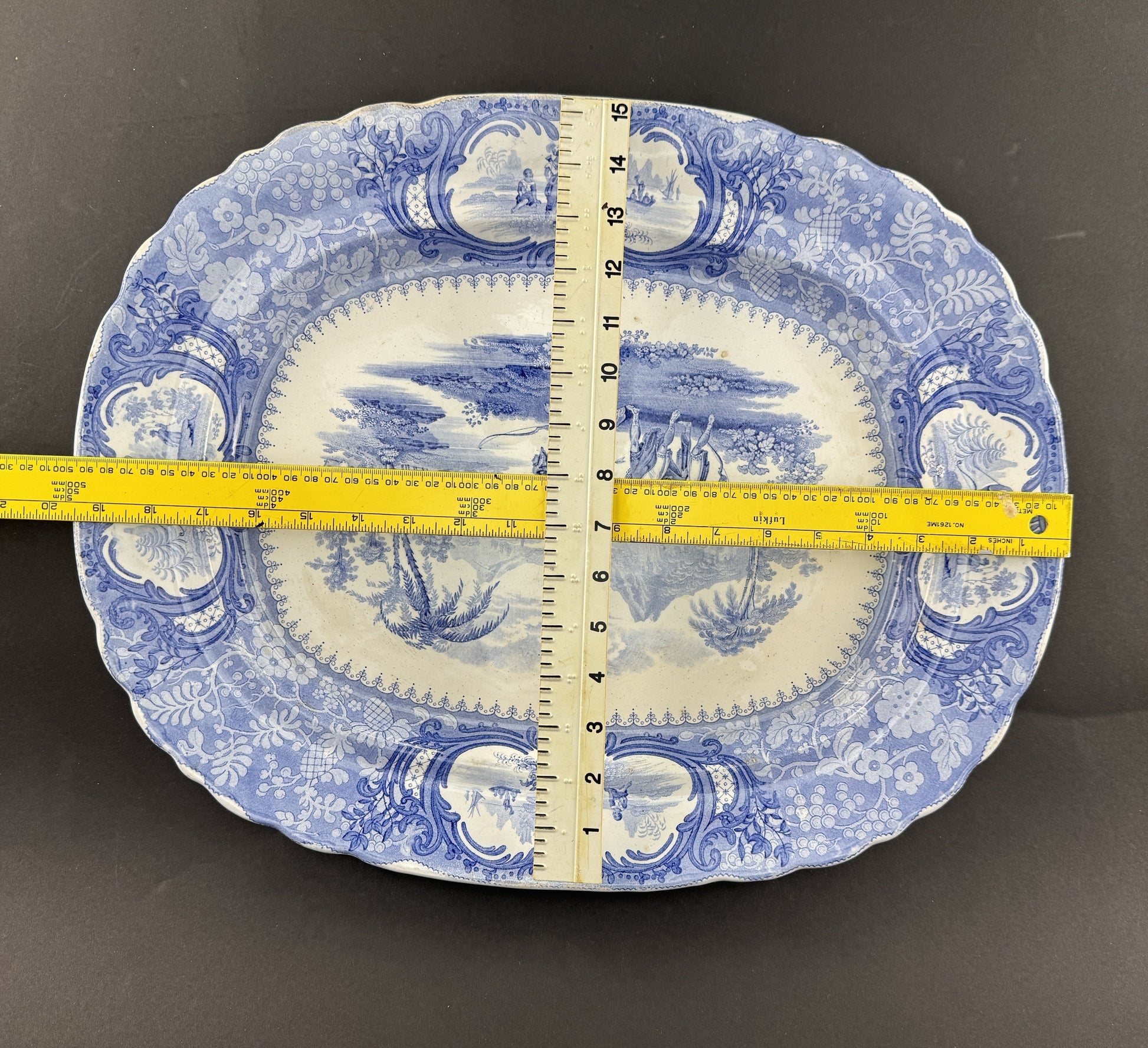 Huge c1840 English Staffordshire Peruvian Hunters Blue White Large Platter