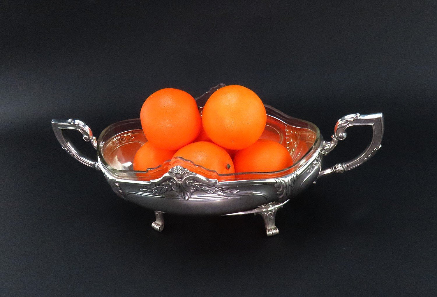 Impressive Antique German 800 Silver Glass Lined Double Handle Centerpiece Bowl